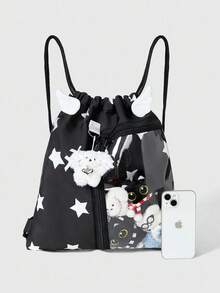 Grunge Punk 1 Mochila de estrella pentagonal negra con estilo con colgante de alas de ángel de peluche para mochila de moda de mujer, bolso de mujer elegante y único (1 bolso y juego de accesorios)