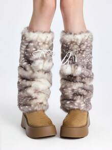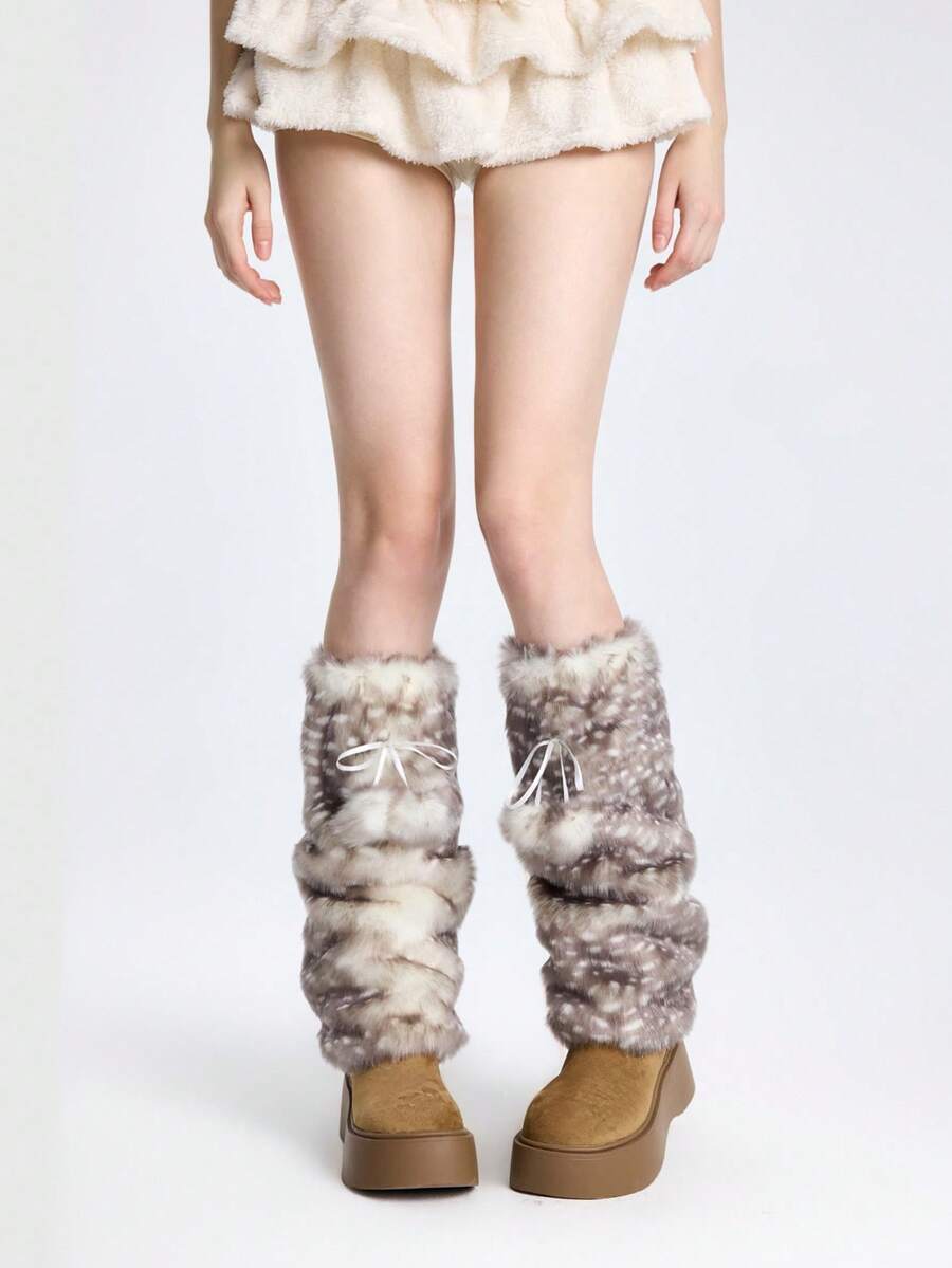 Fairycore 1 par de calentadores de piernas con diseño lindo de ciervos, calentadores de piernas gruesos y grandes con pompones esponjosos estilo Y2K, ajuste elegante, adecuados para uso diario, otoño/invierno, vacaciones y fiestas