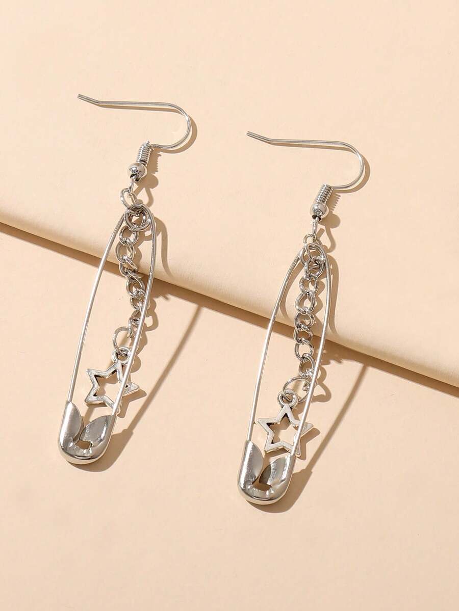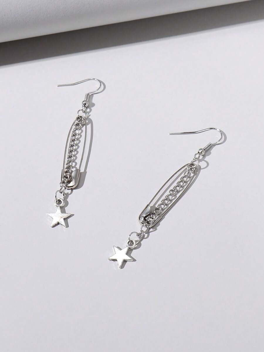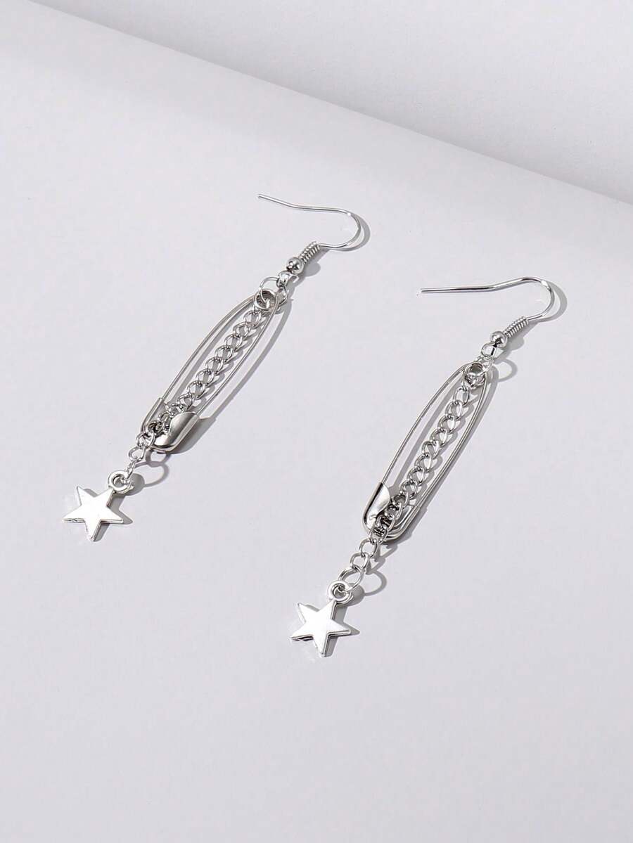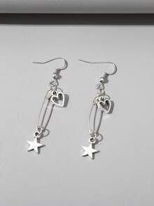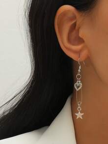 1 par de pendientes con colgante de corazón y estrella de moda y versátiles