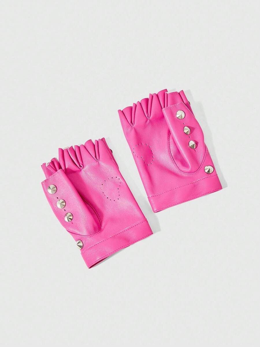Grunge Punk 1 par de guantes sin dedos de metal con remaches en color fucsia, estilo Y2K punk, adecuados para festivales de música, cosplay, etc.