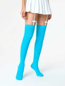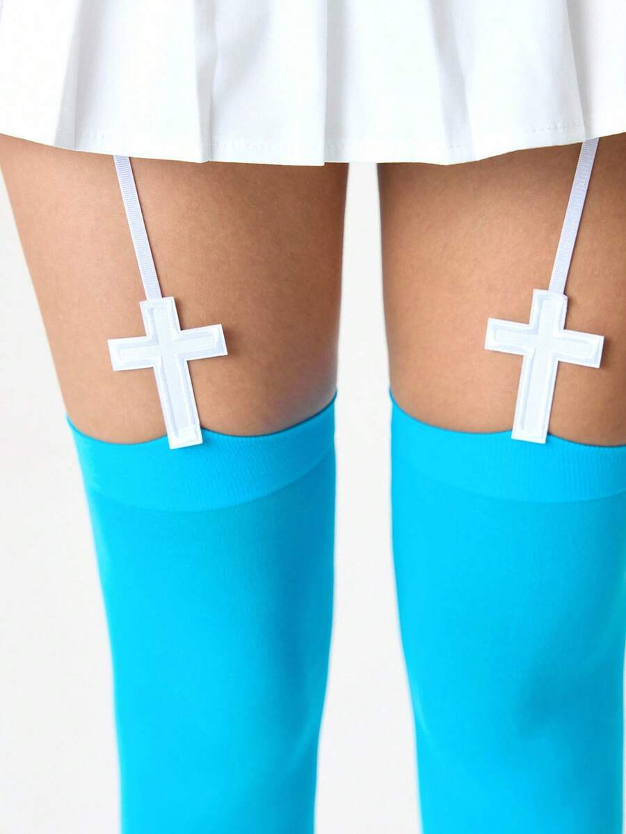 Grunge Punk 1 par de medias altas estilo gótico con patrón de cruz oscura