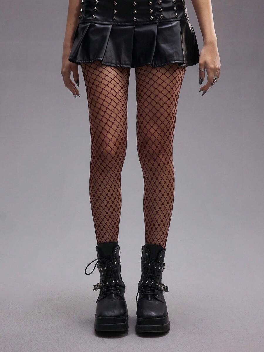 Grunge Punk 1 par de medias de rejilla multicolor estilo gótico para mujeres, adecuadas para todas las estaciones