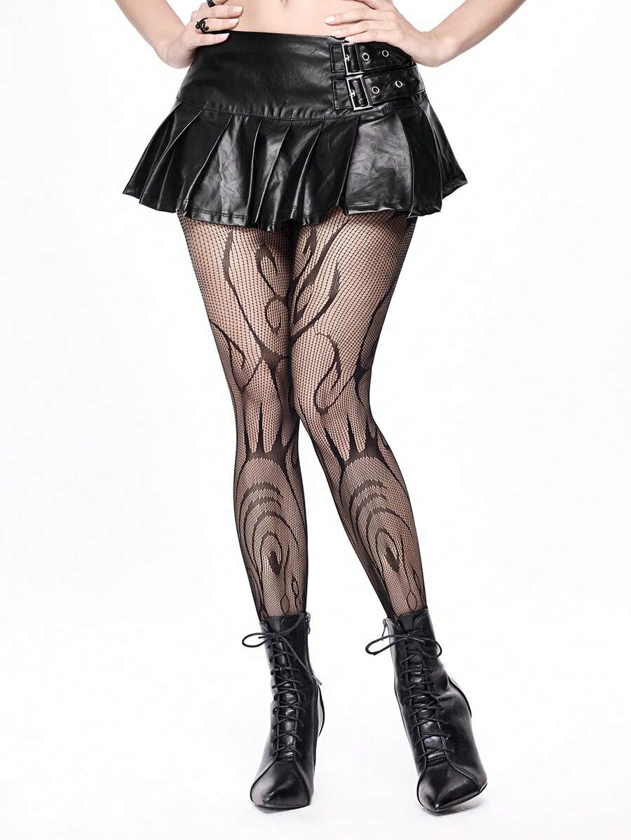 Fairycore 1 par de calcetines de malla con estampado de tigre de unicolor y estilo sexy, medias negras de encaje retro, pantimedias elásticas ultradelgadas y de deseo puro con diseño hueco.