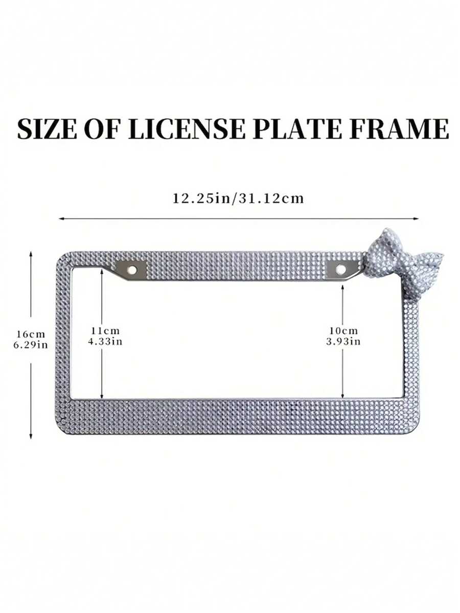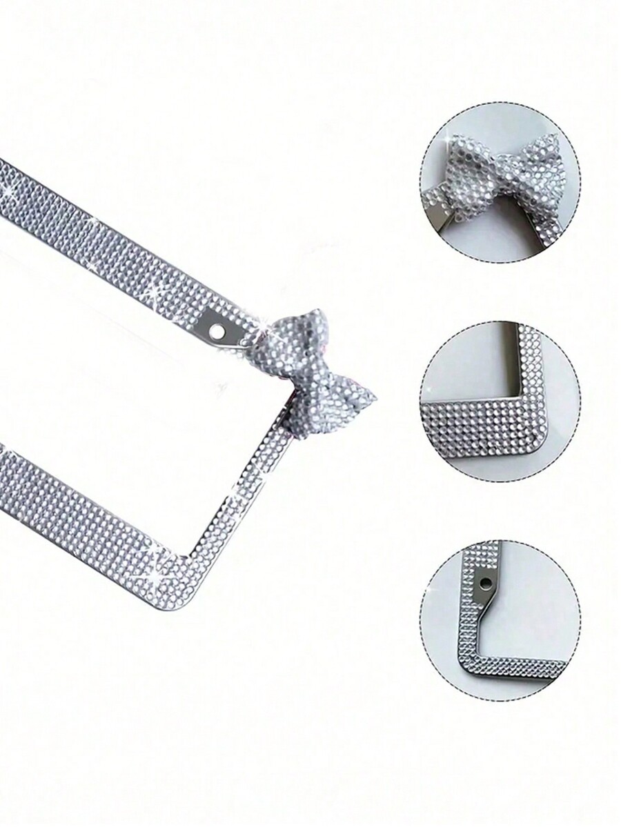 1 Juego De Placa De Matrícula De Acero Inoxidable Con Marco En Forma De Lazo Con Diamantes, Actualice El Aspecto De Su Coche