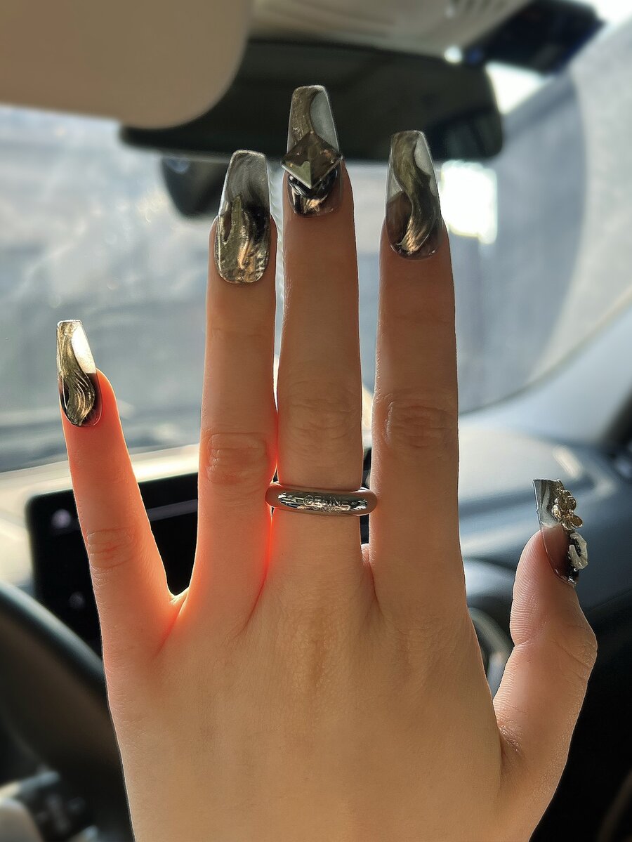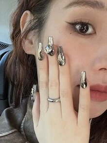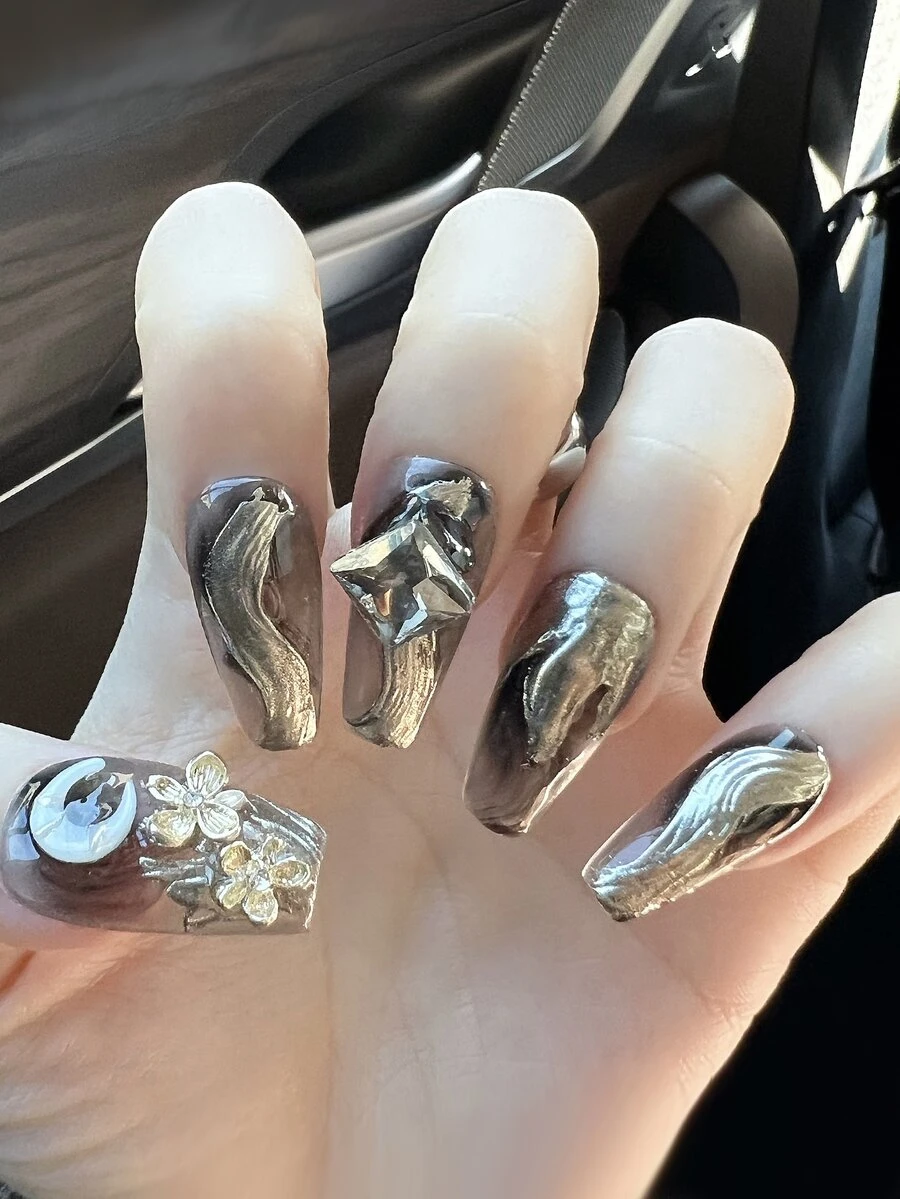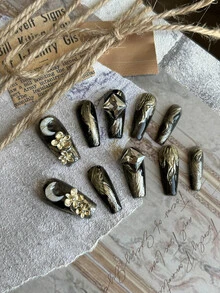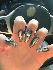 10 piezas largo ataúd 3d con diseño de flor Uña postiza & 1 hoja cinta