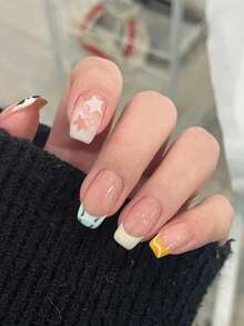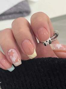 Kawaii 10 piezas largo ataúd con estrella & con patrón de vaca Uña postiza Kit