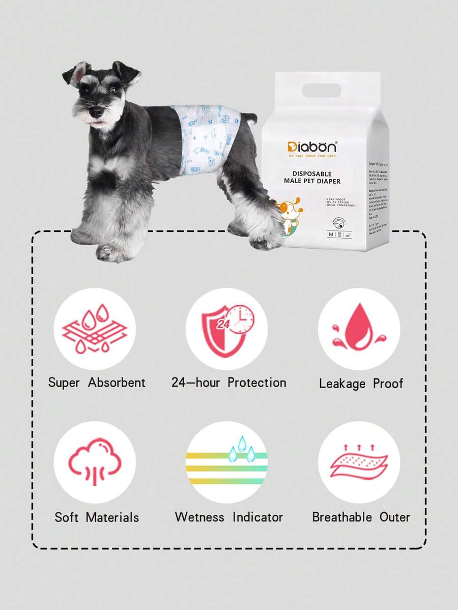 paquete de 10 pañales desechables para perros, pantalones higiénicos anti-fugas y anti-olores, entrega de paquete al azar