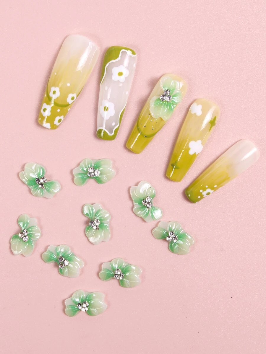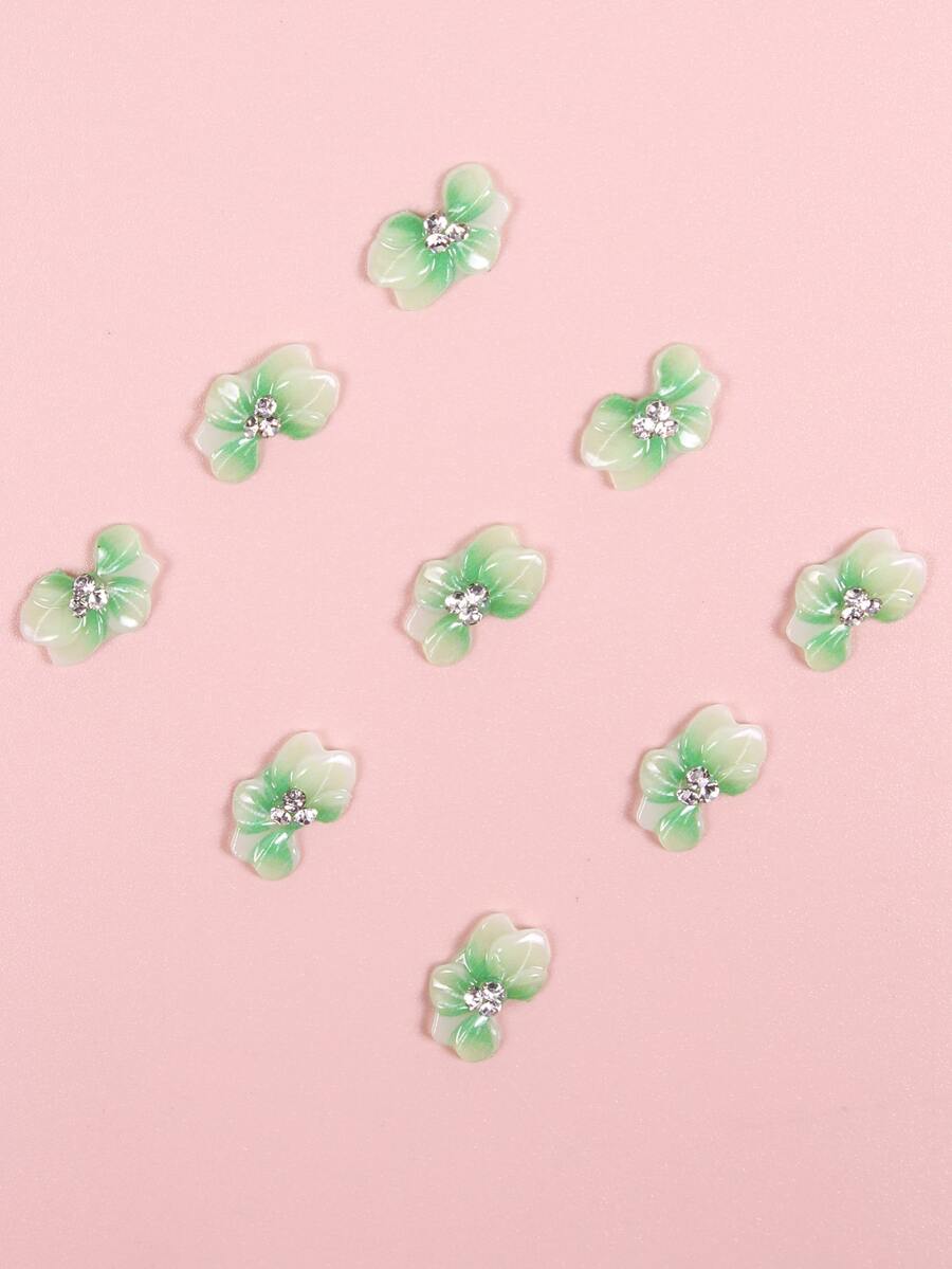 10 piezas Decoración de uñas con diseño de diamante de imitación en forma de flor