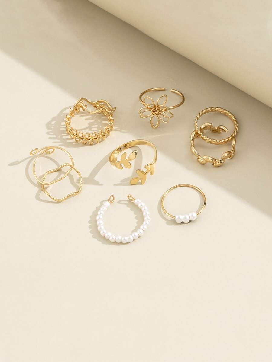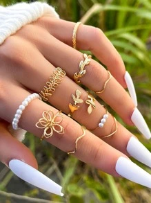10 piezas/set Anillo hoja & con diseño de flor