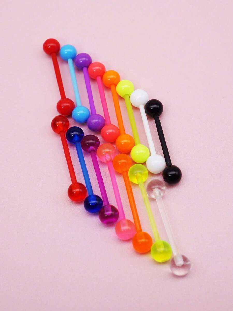 Set de 15 anillos de lengua de plástico de colores aleatorios, diseño básico para uso diario, unisex