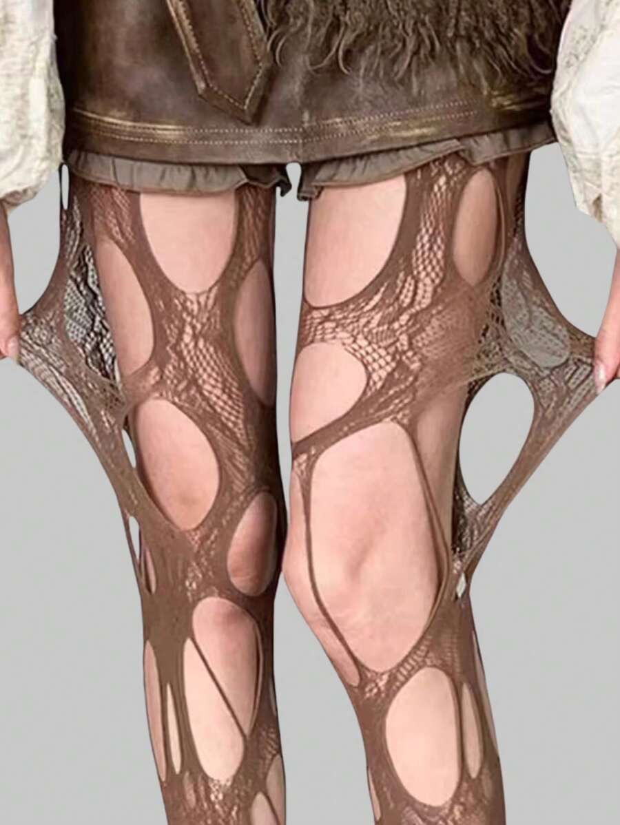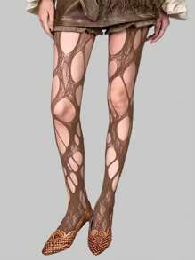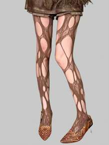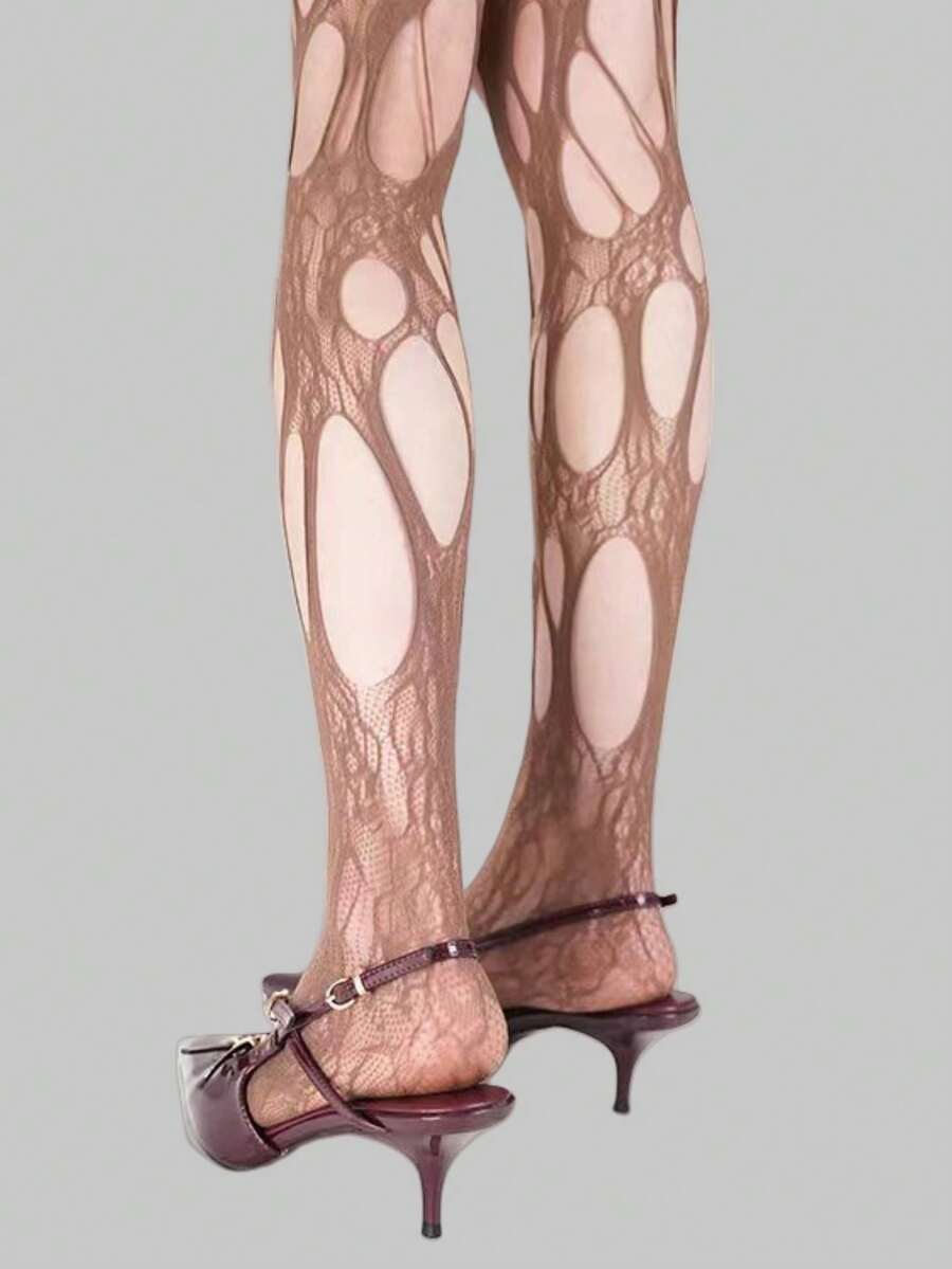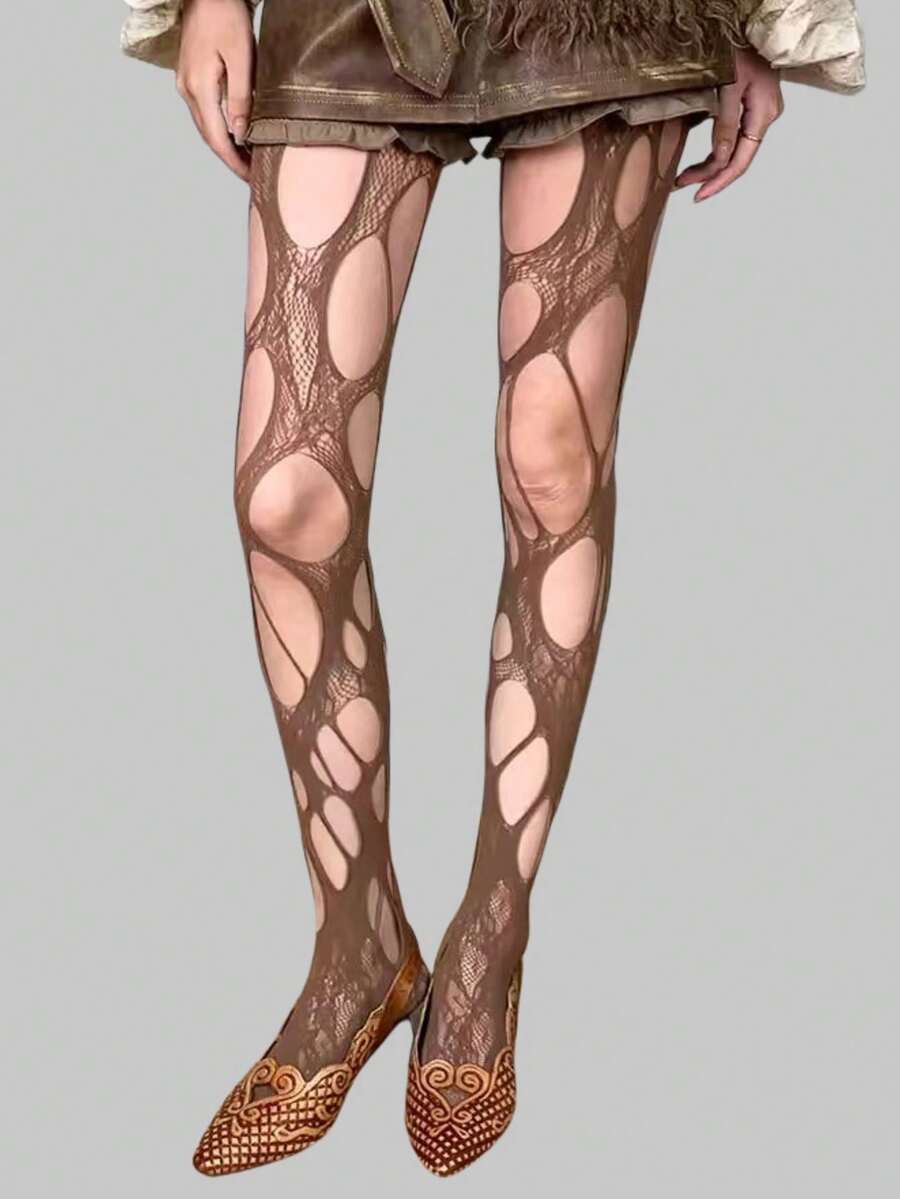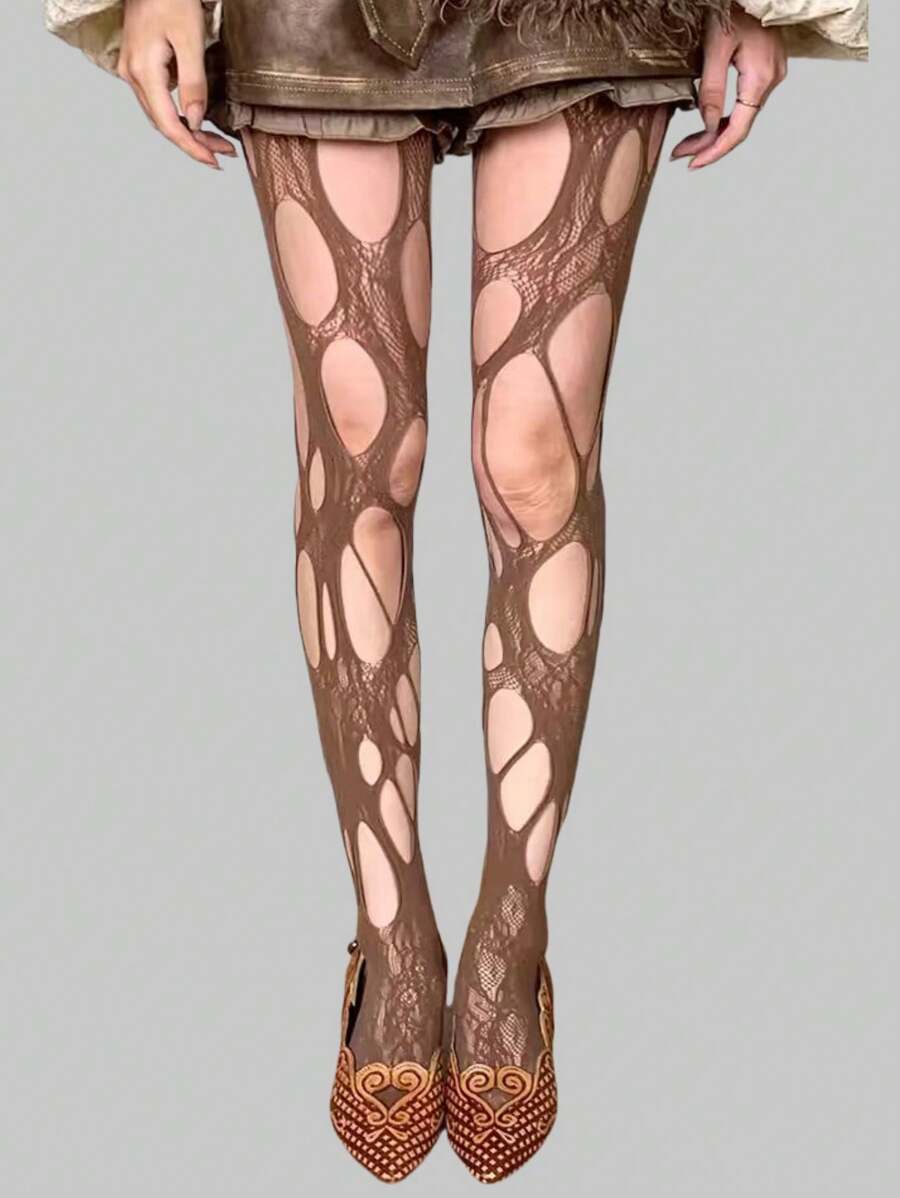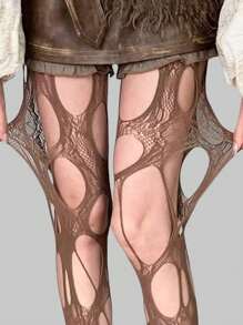 Goth 1 par Medias y pantis asimétricos de encaje y rejilla rasgada para mujeres, todo el año