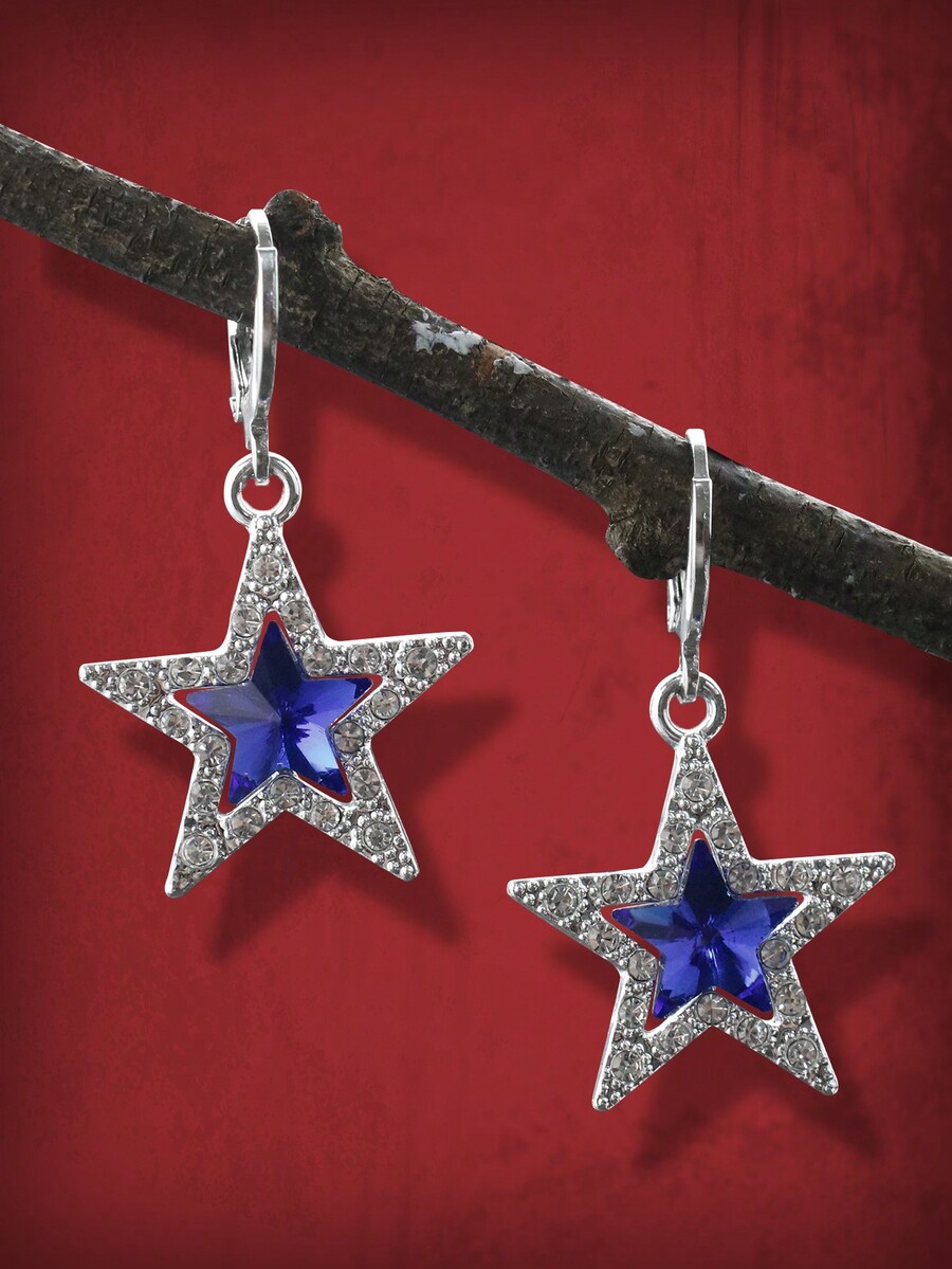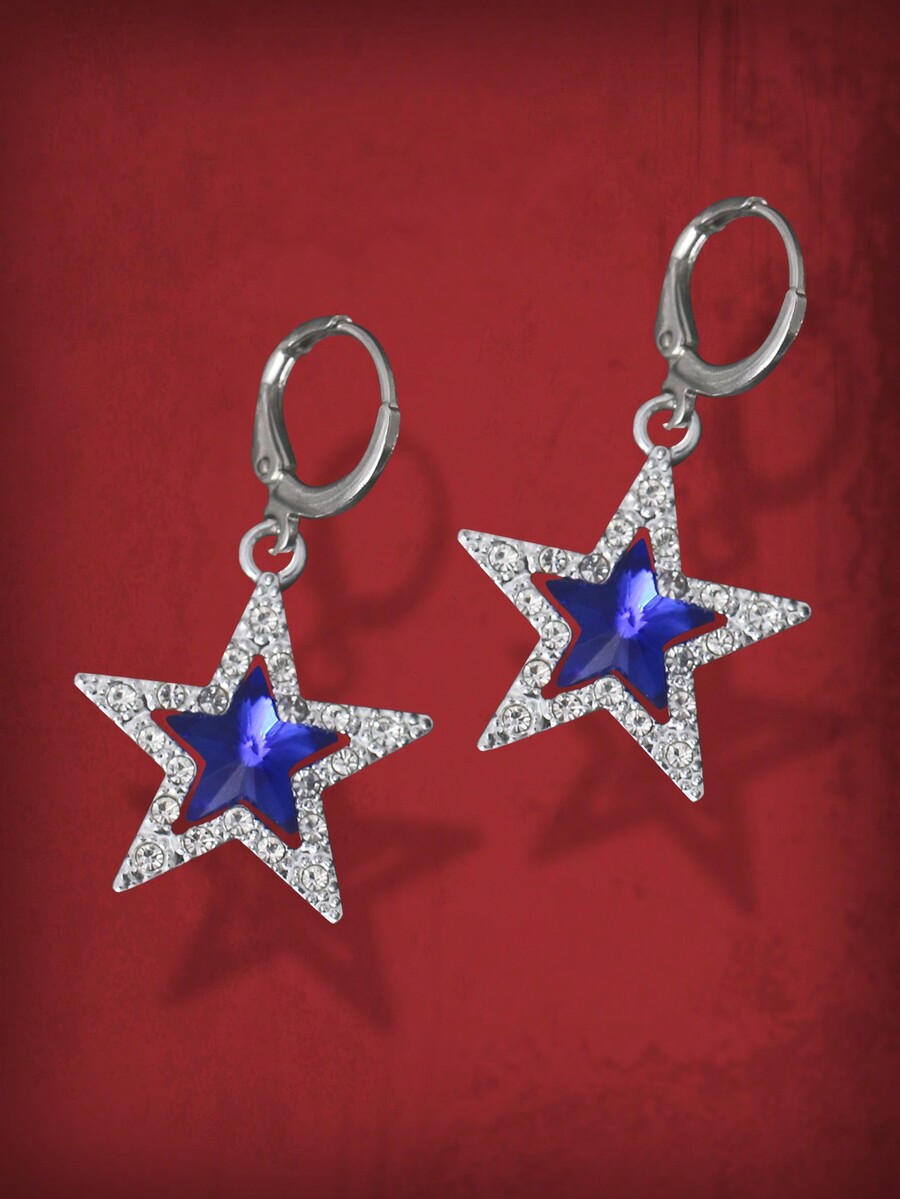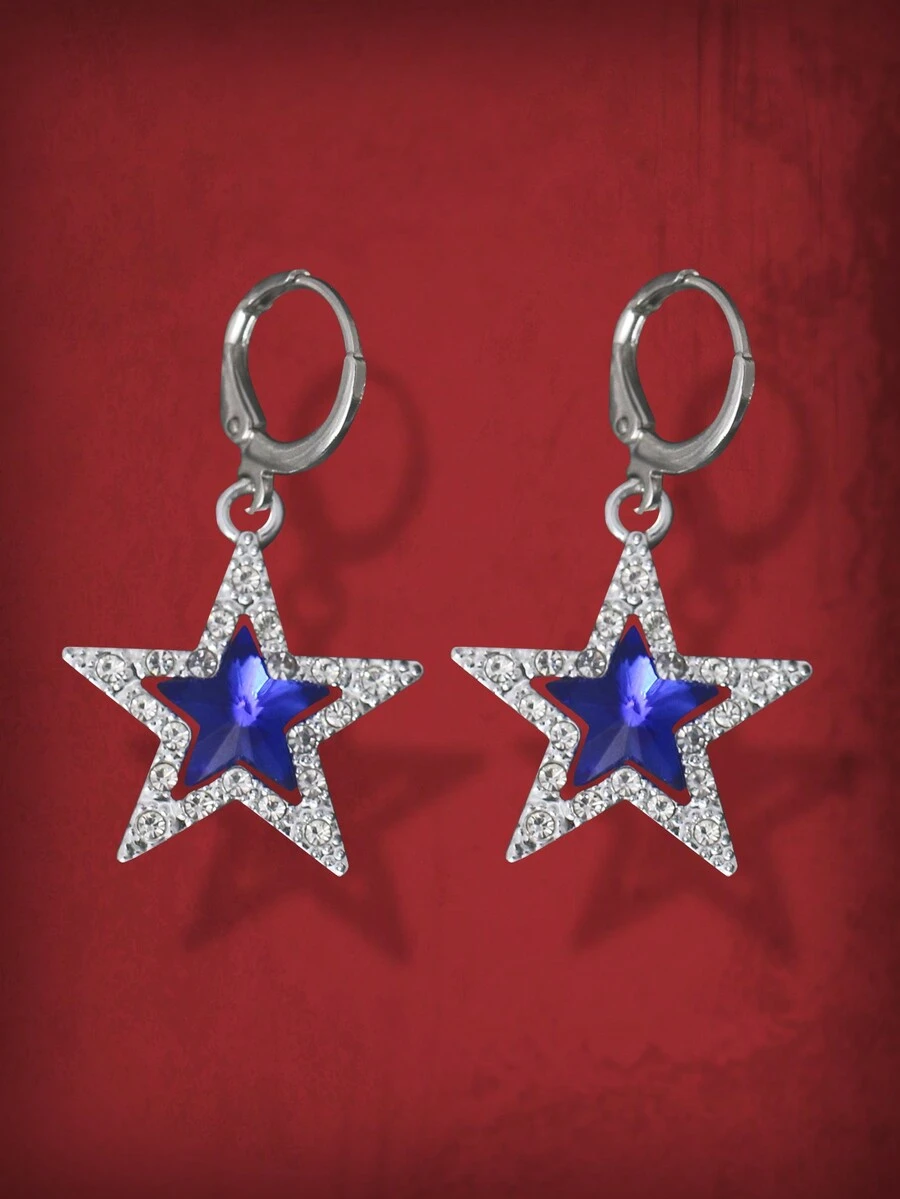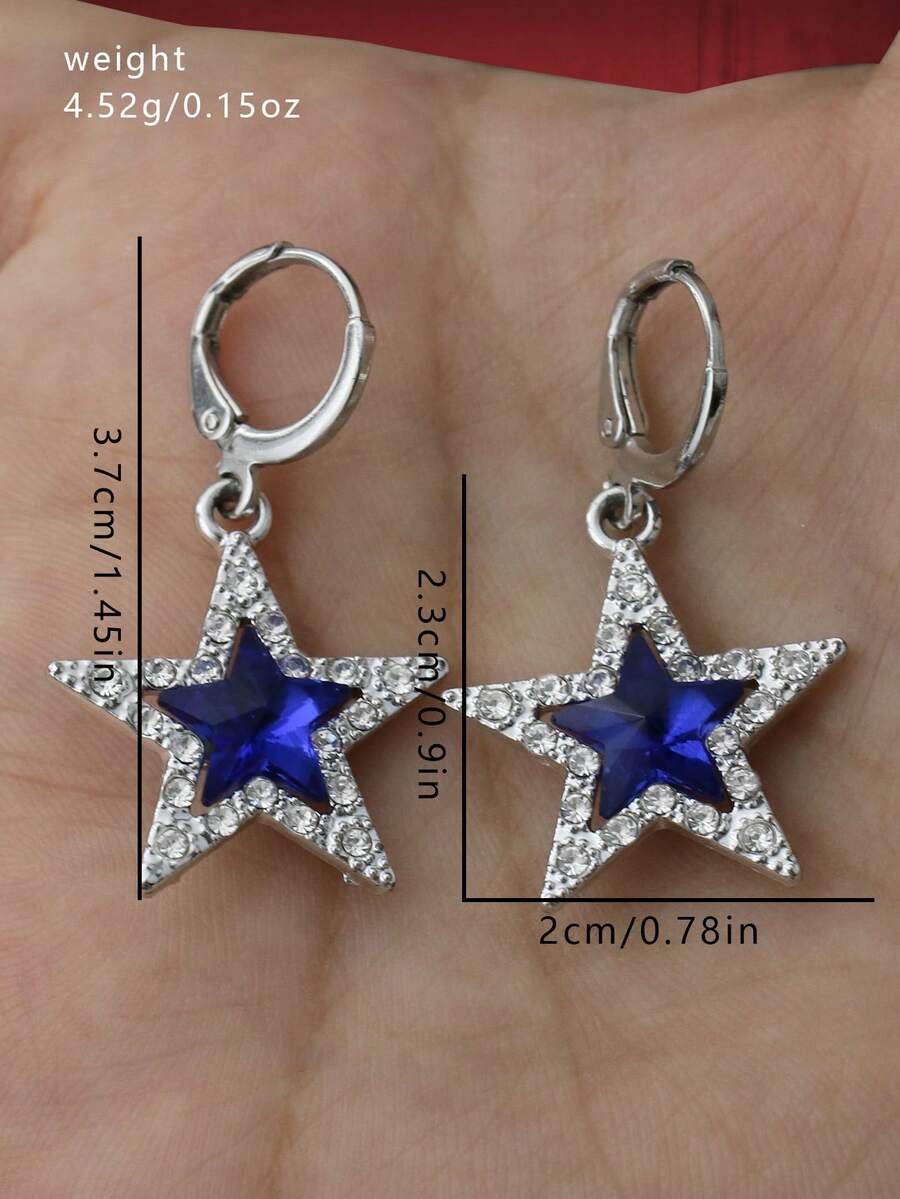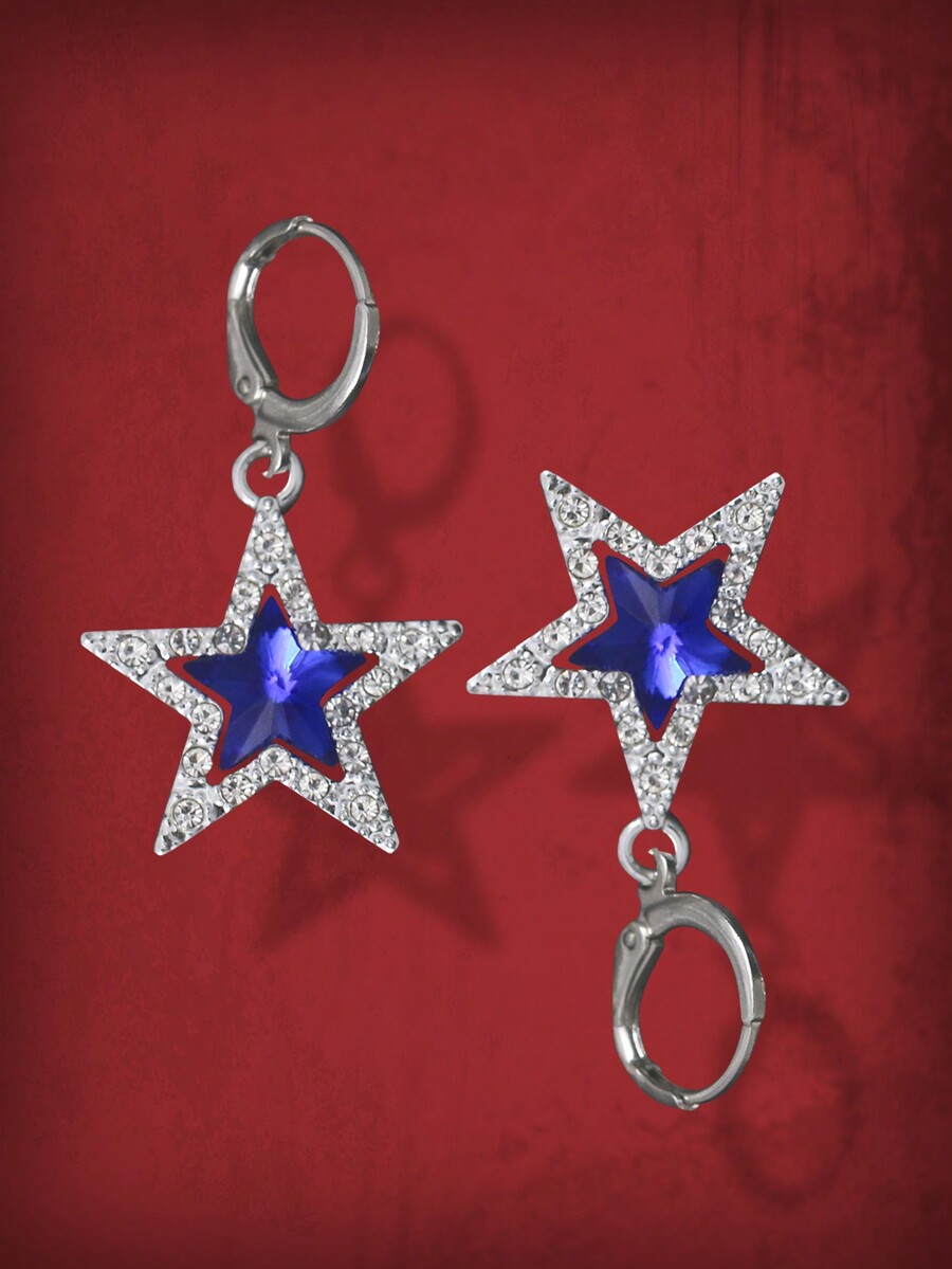 Grunge Punk 1 par Pendientes azul grande en forma de estrella colgante decorado con Diamantes de imitación