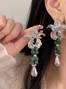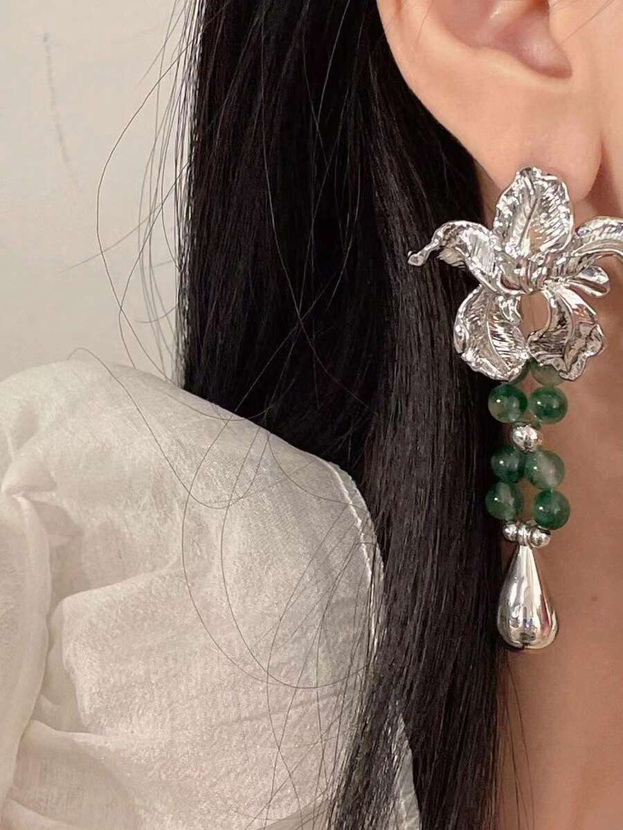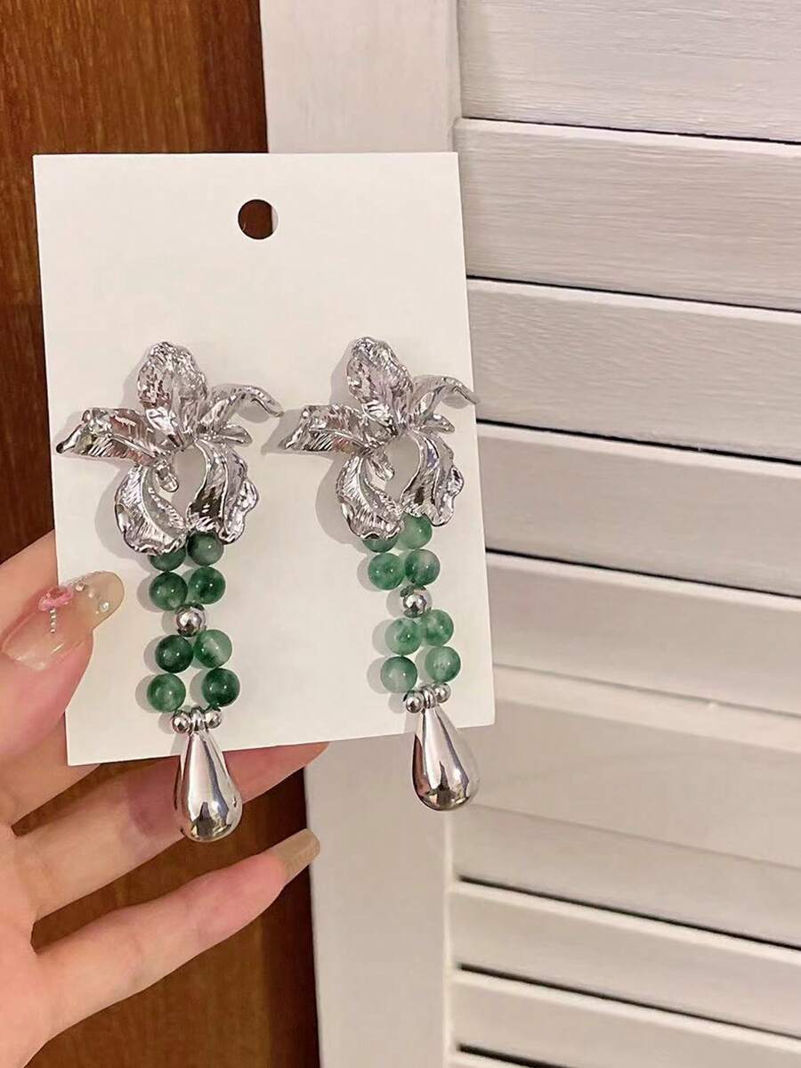 Fairycore 1 par Pendientes largos bohemio hierro de aleación con diseño de flor con cuenta para mujeres para decoración diaria