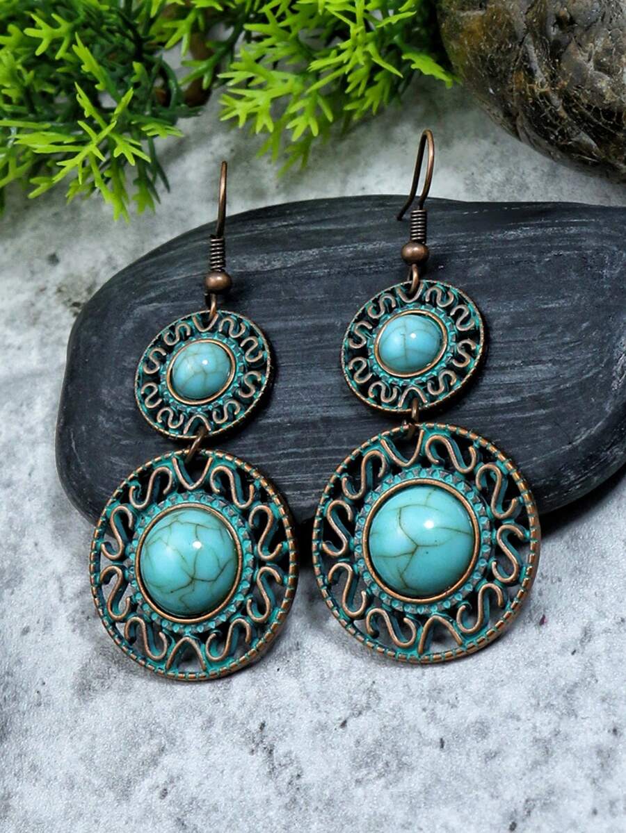 Fairycore 1 Par De Pendientes De Gota Redondos Decorados Con Turquesa En Estilo Bohemio Para Mujer, Uso Diario