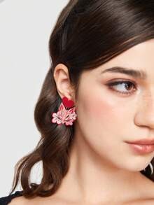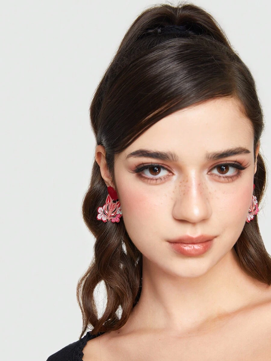 J-Fashion 1 par Pendientes con dibujos animados acrílico zorro & en forma de corazón colgante