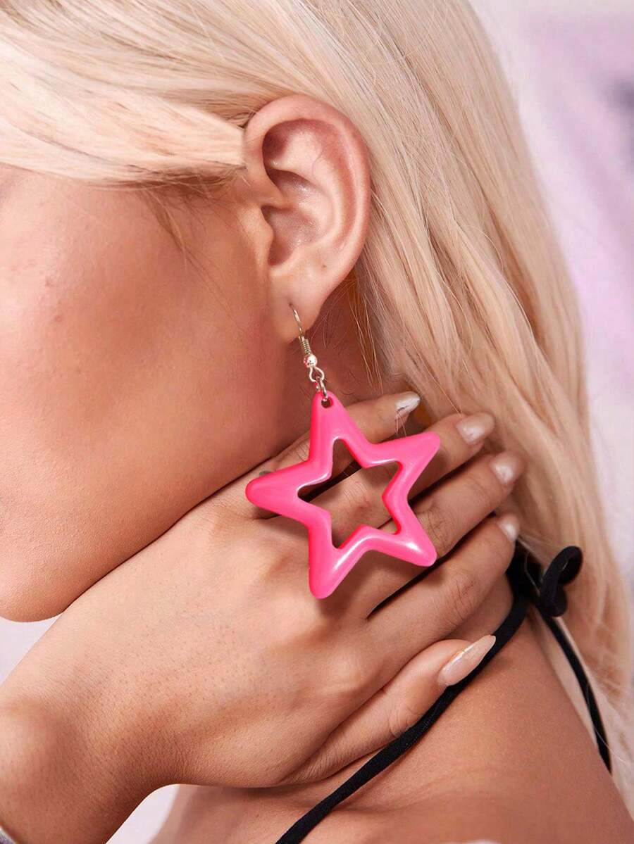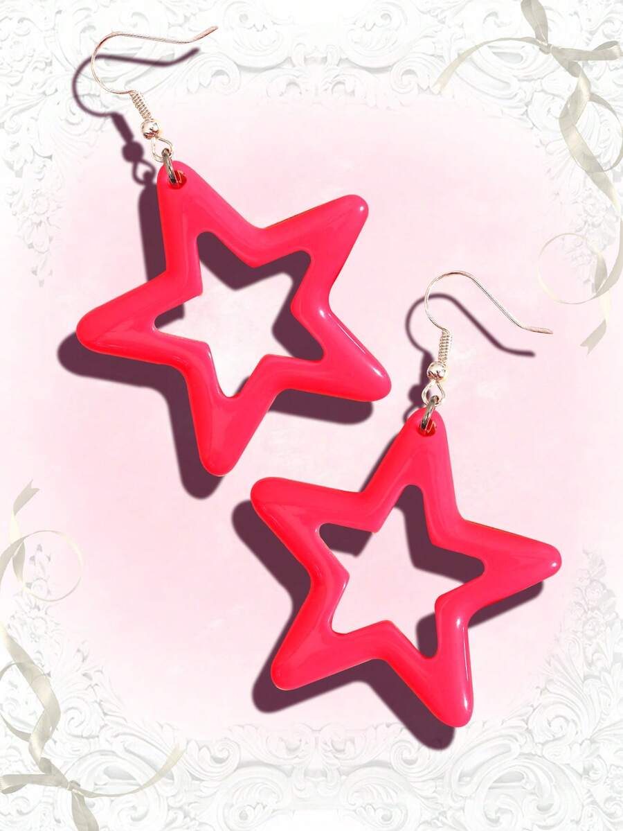 Kawaii 1 par Pendientes largos dulce acrílico con estrella para mujeres para decoración diaria
