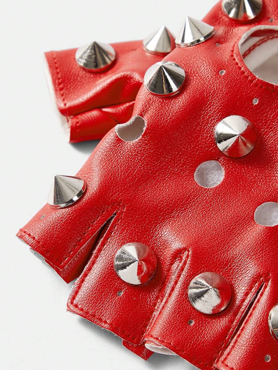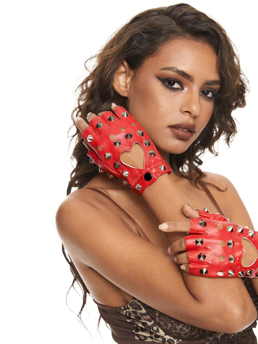 Grunge Punk 1 par de guantes sin dedos con tachuelas con forma de corazón básicos y lindos para mujer, adecuados para uso casual y en discotecas en invierno