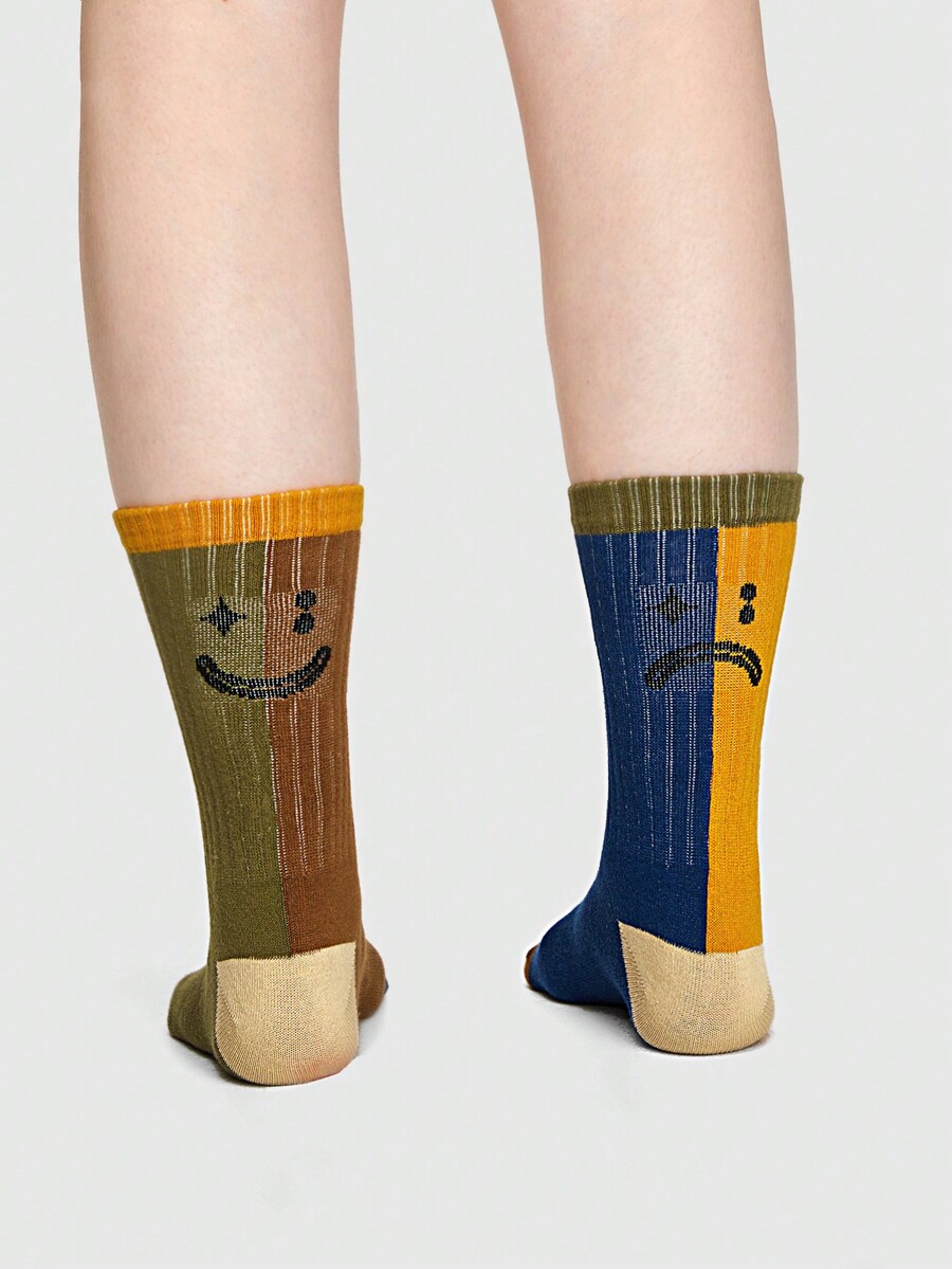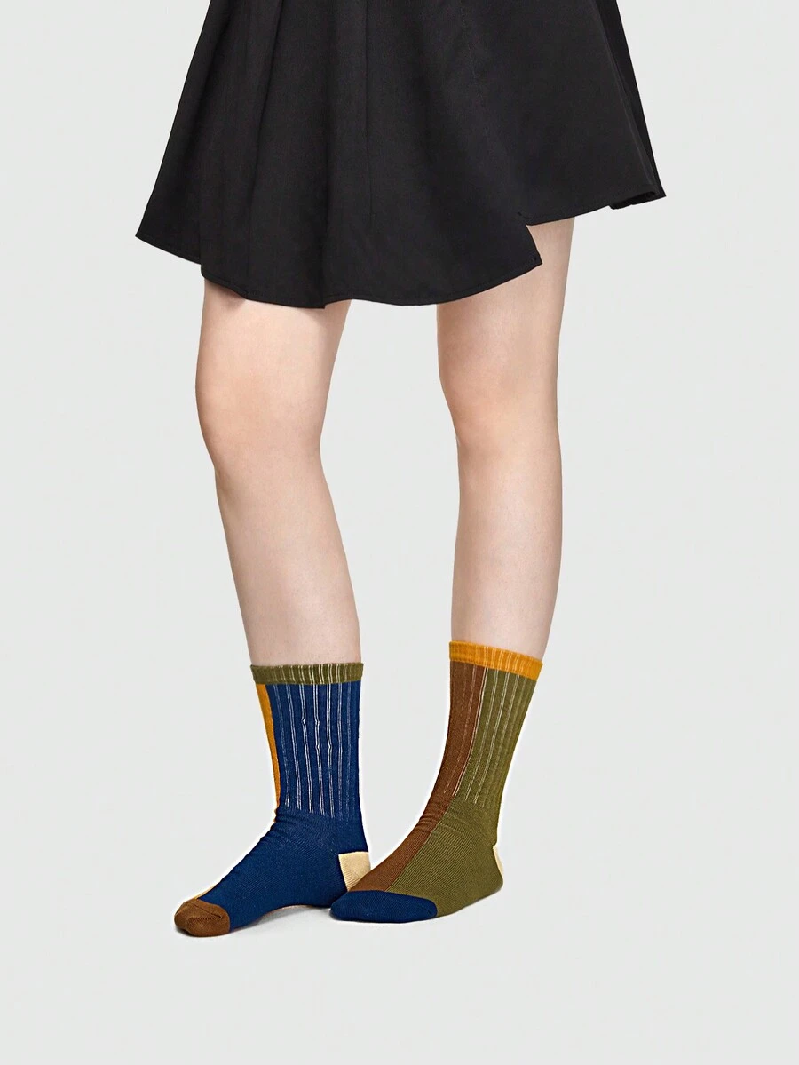 Grunge Punk Mujer 1 par Calcetines de tripulación con estampado de dibujos animados de color combinado