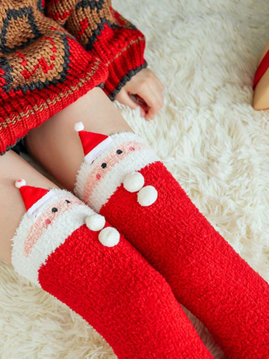 Kawaii Mujer 1 par Calcetines sobre rodilla Papá Noel de Navidad adorno
