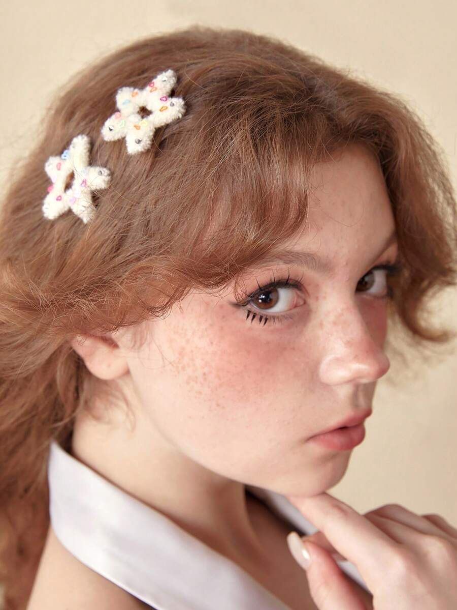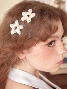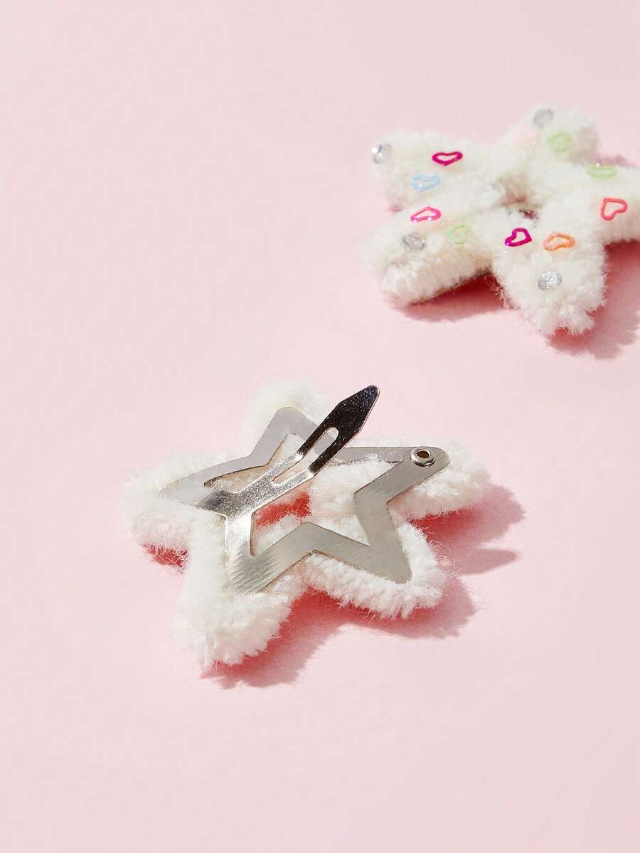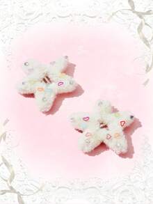 Kawaii Mujer 1 par Horquilla con patrón de corazón con diseño de estrella