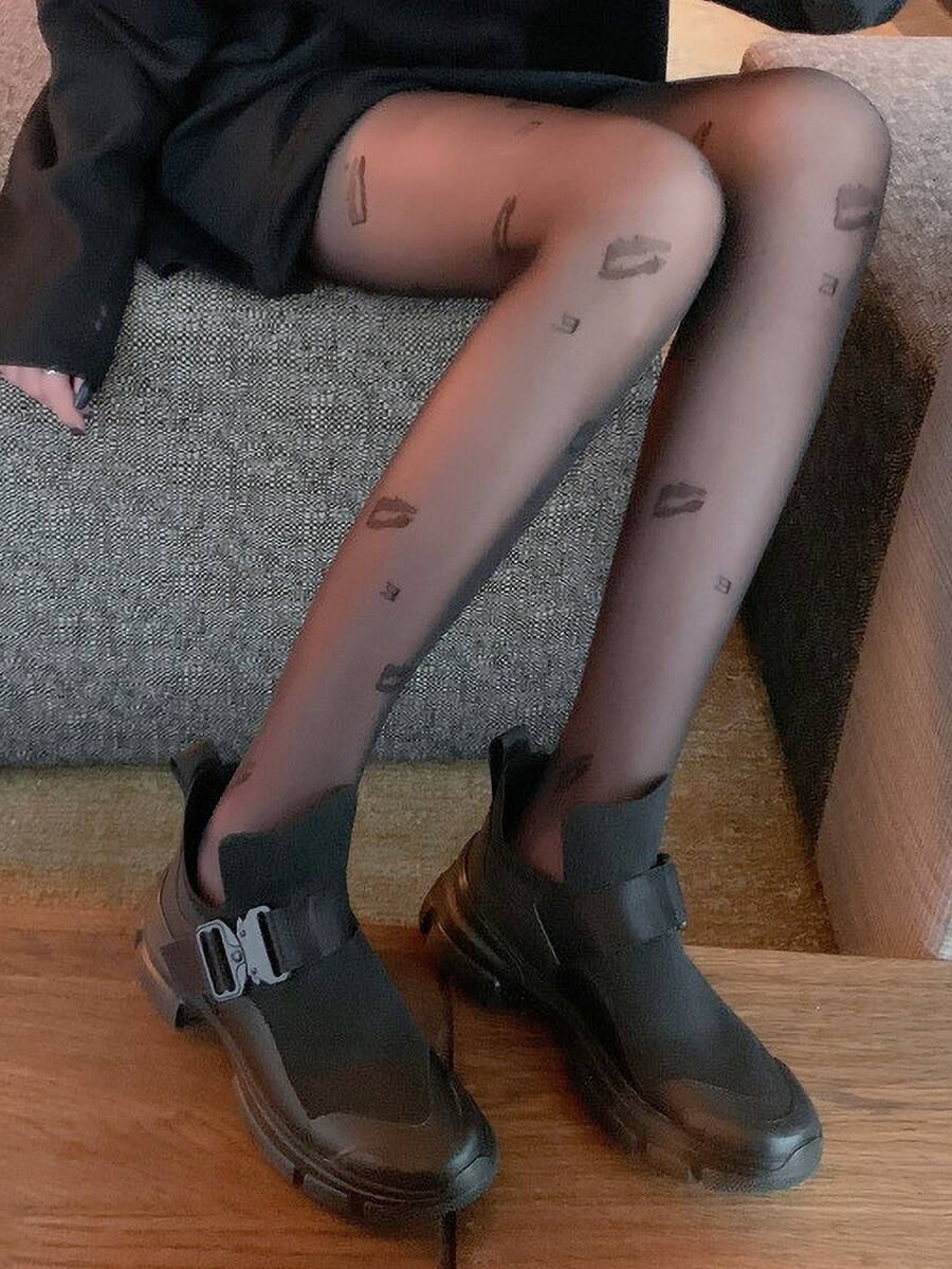 Mujer 1 par Medias labio & con patrón de letra de moda para fiesta