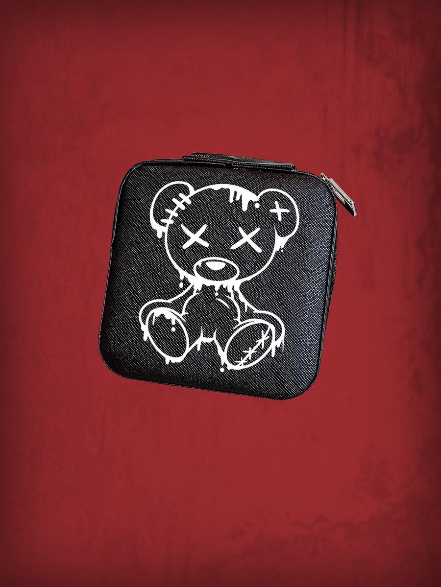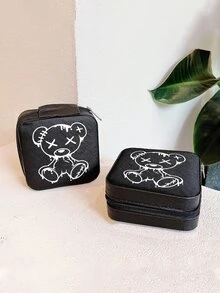 1 pieza con estampado de oso Bisutería con dibujos animados forma cuadrada Caja de almacenamiento de joya para casa