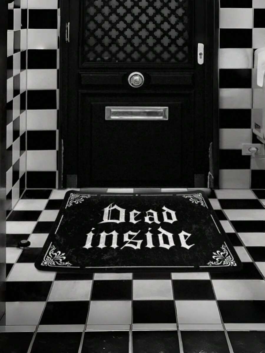 Goth 1 pieza Felpudo de puerta impreso en blanco y negro con estilo gótico, resistente a la suciedad y antideslizante, adecuado para baño, habitación, entrada, decoración del hogar