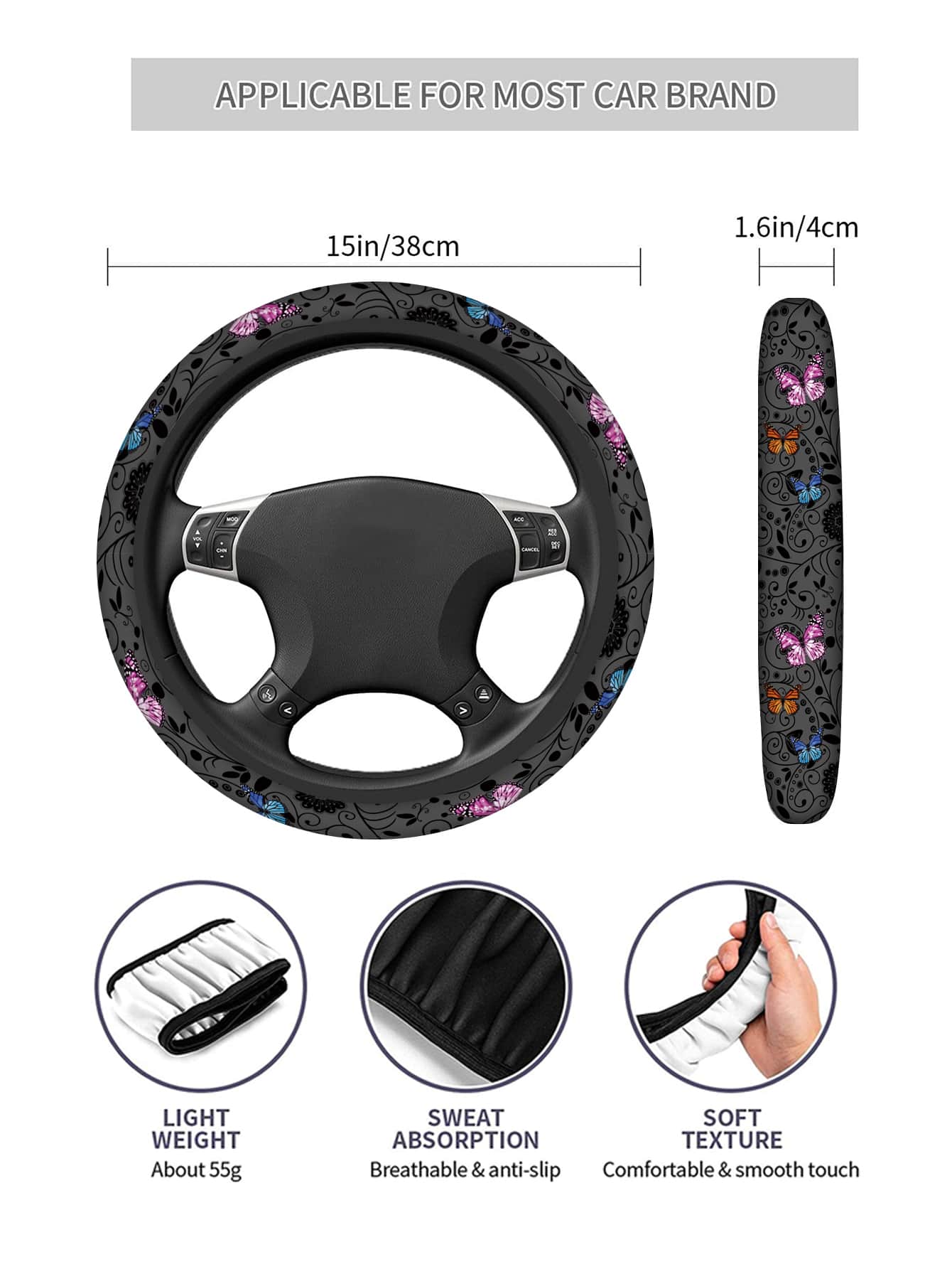 1 pieza Cubierta del volante del coche con patrón de mariposa