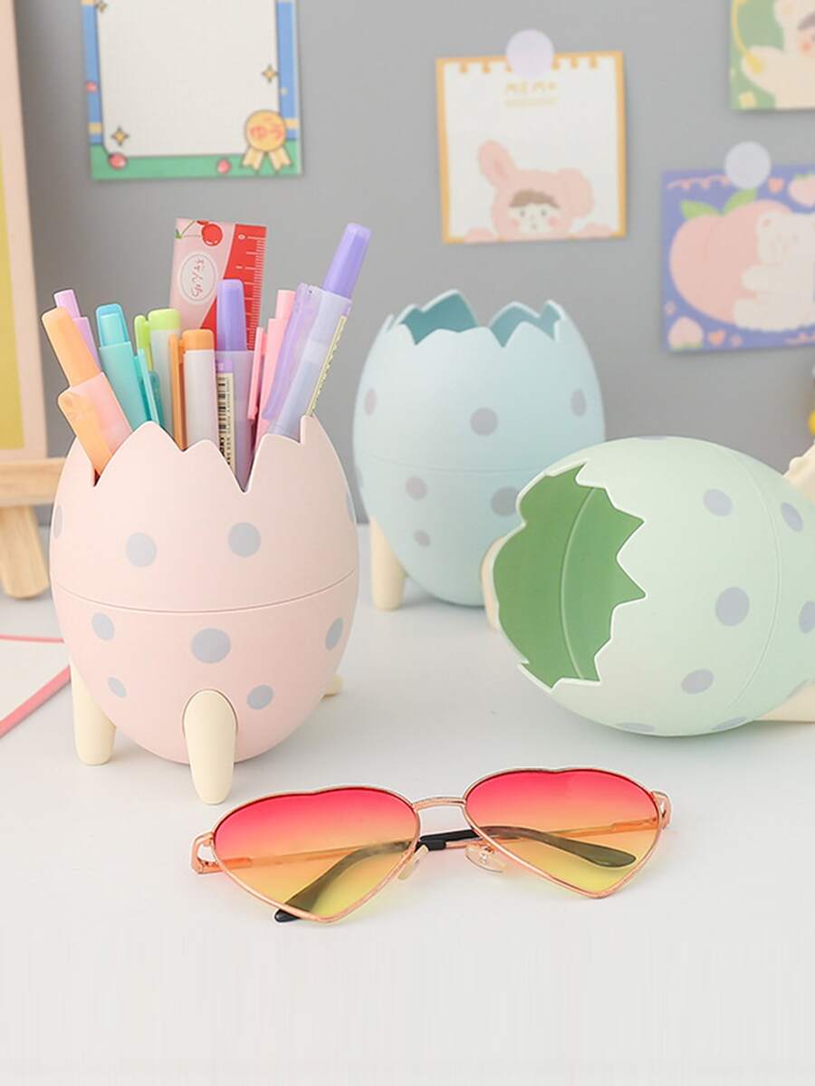 1 pieza Bote para lápices con dibujos animados huevo de plástico de color al azar