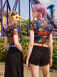 Street Life 1 pieza Top con estampado de dibujos animados de malla