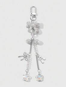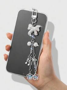 Kawaii 1 pieza Cadena de plata delicada, dulce, versátil y de lujo, alta gama, completamente decorada con rhinestones con decoración de moño, bola de rhinestones, nota musical, flor y estrella, adecuada para mujeres, uso diario, regalo de vacaciones, DIY de funda de teléfono, llavero, colgante de bolso, colgante de teléfono