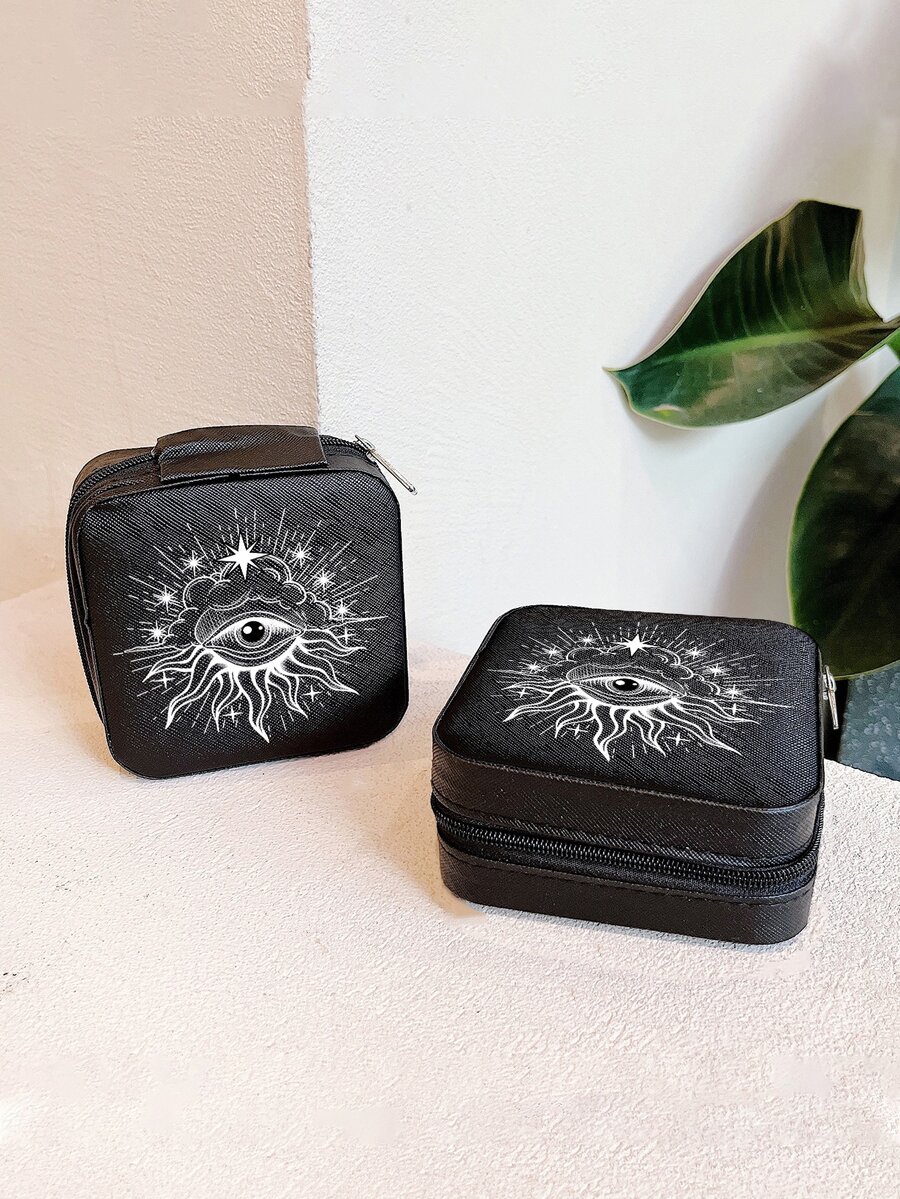 1 pieza ojo & con estampado de sol Bisutería moderno forma cuadrada Caja de almacenamiento de joya para casa