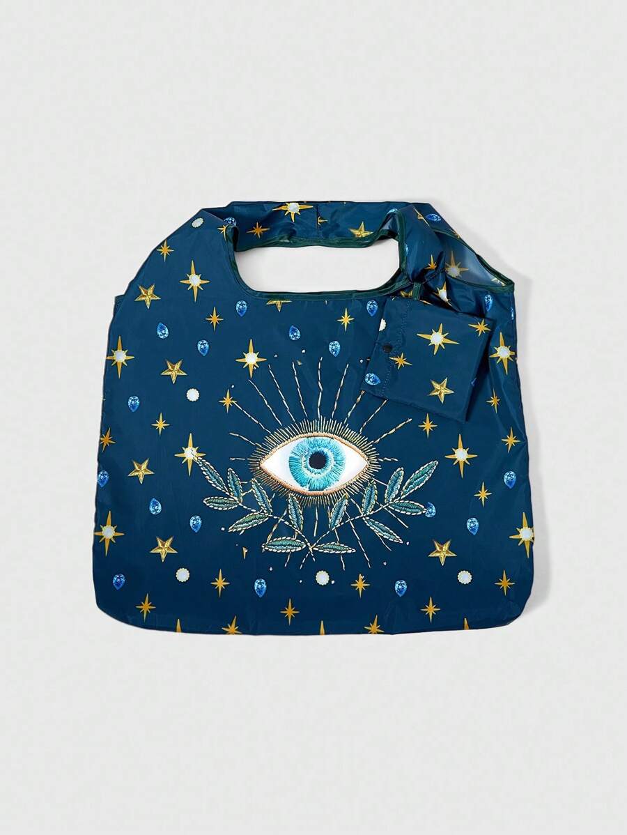 Fairycore 1 pieza Bolso de mano plegable con motivo celestial con forma de ojo, de gran capacidad, con monedero incorporado