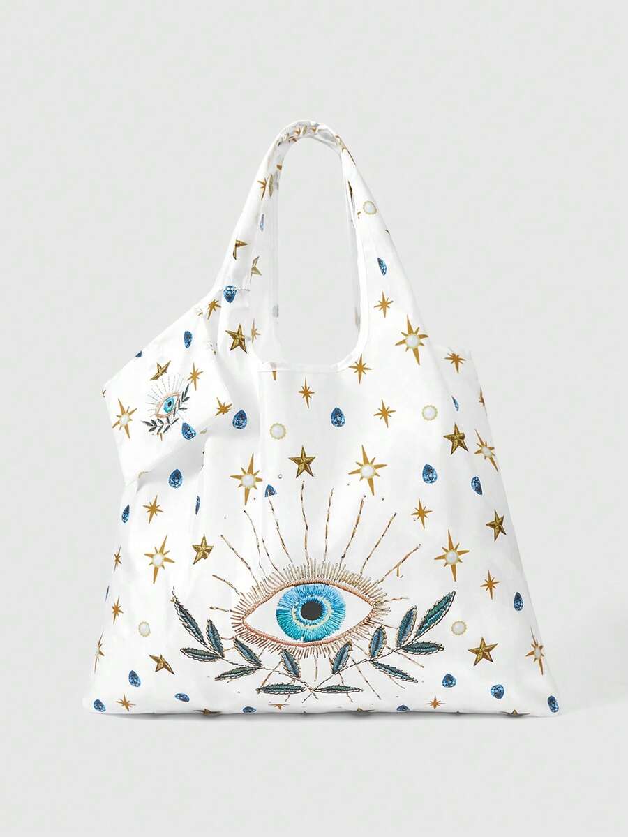 Fairycore 1 pieza Bolsa de almacenamiento con diseño celestial con forma de ojo, bolsa plegable de gran capacidad con monedero