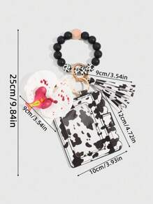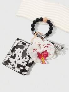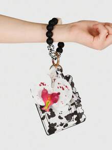 Kawaii 1 pieza Pulsera de cuentas con estampado de leopardo de moda, Soporte de tarjeta de goma con decoración de mariposa y flor, Organizador de tarjeta de estudiante y tarjetas pequeñas