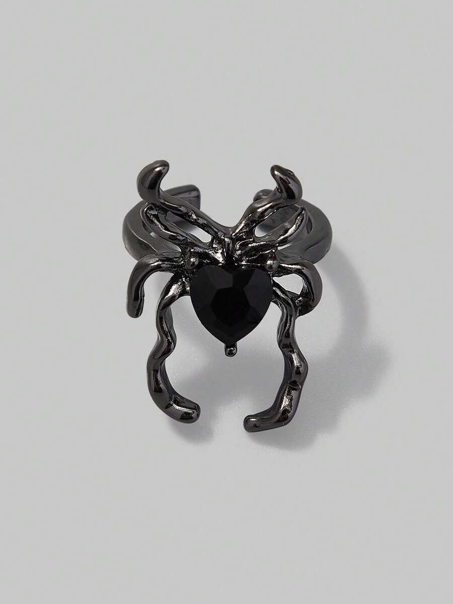 Goth 1 pieza Anillo abierto miedoso hierro de aleación con diseño de araña para mujeres para decoración diaria