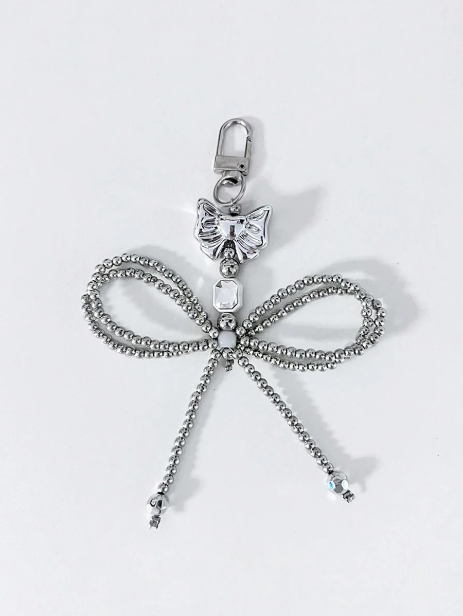 Kawaii 1 pieza Dije plateado de corazón y lazo para estuche de cámara/teléfono, accesorio para bolso de niña