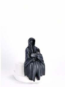 Goth 1 pieza Ornamento de escritorio gótico, Decoración de escritorio de calavera, Ornamento gótico de túnica negra de Halloween, Ornamento de fantasma sin rostro de túnica negra para escritorio o automóvil, Figura estatuilla del rey misterioso, mercancía de juego