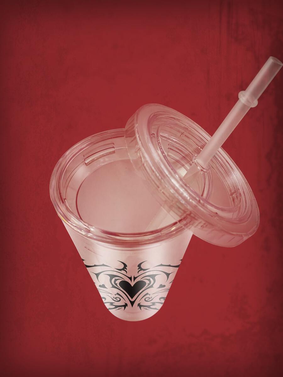 1 pieza Botella con tapa con estampado de corazón moderno abstracto con estampado de corazón para oficina