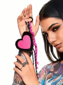 Kawaii 1 pieza Llavero con forma de corazón ajustable, de bolso, estilo coreano, elegante, moda gótica oscura, negro, piel de peluche, fucsia, negro y blanco, adecuado para uso diario de mujeres, regalo de vacaciones