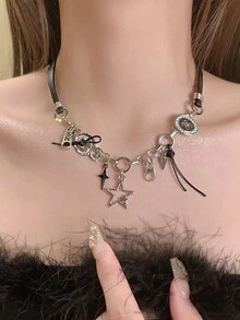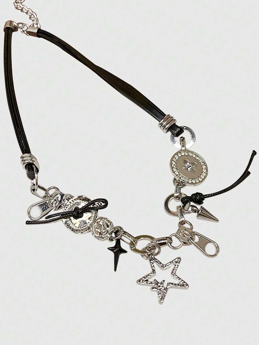 Grunge Punk 1 pieza Collar con en forma de estrella con botón & con estrella con retazo