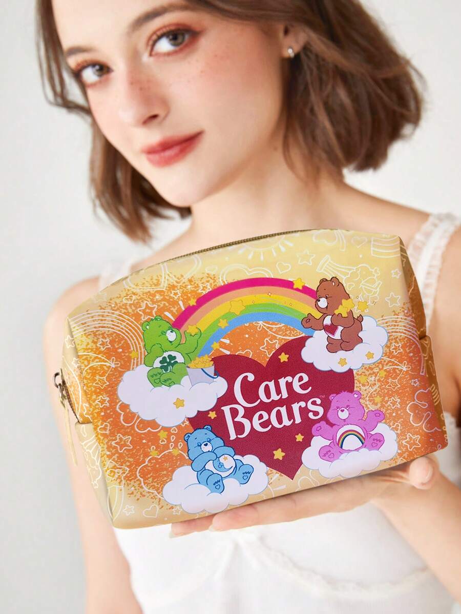 ROMWE X Care Bears 1 pieza Bolso de maquillaje con letra con estampado de oso de dibujos animados PVC