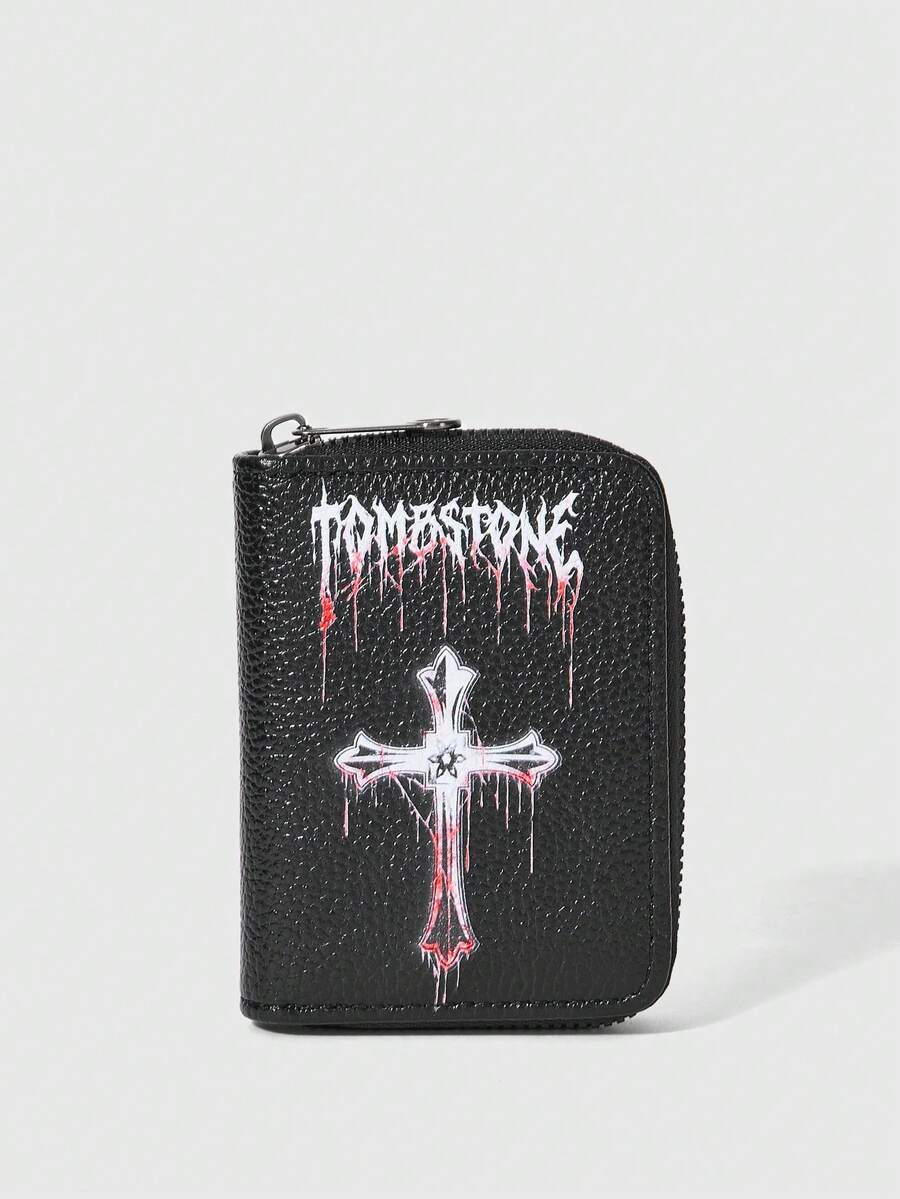 Grunge Punk 1 pieza Tarjetero de Halloween con diseño de cruz roja