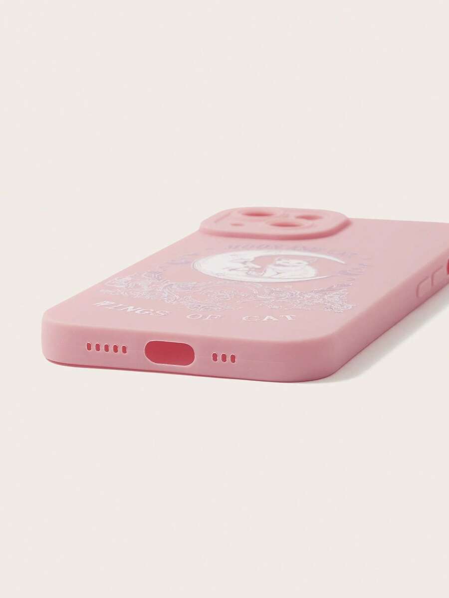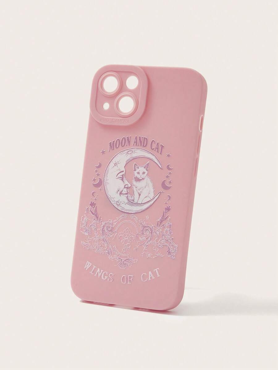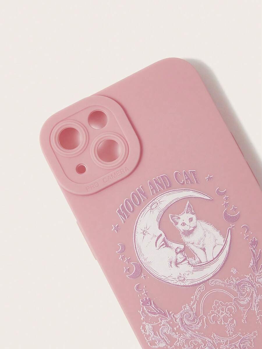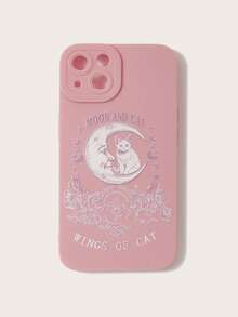 Kawaii 1 pieza Funda de TPU con gráfico de gato, luna y letra compatible con iPhone