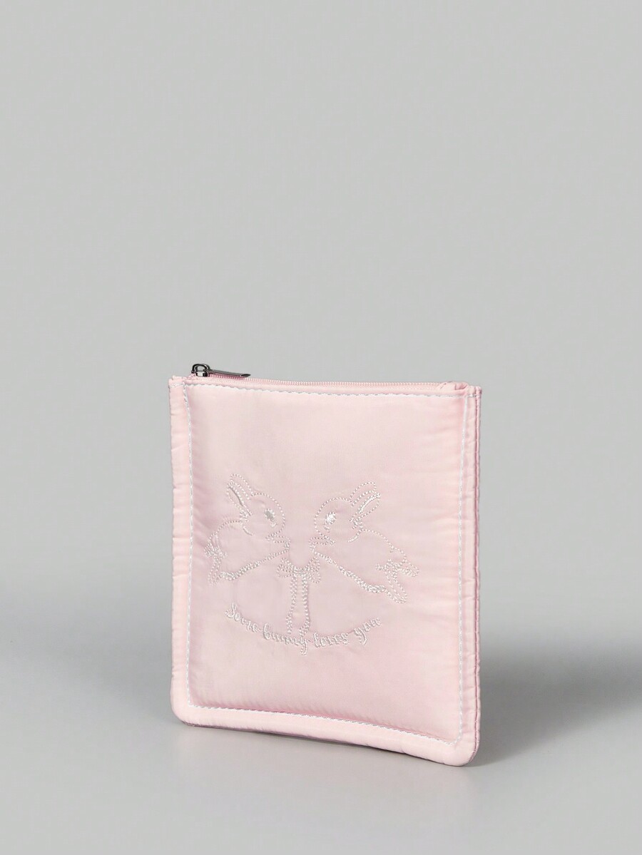 Kawaii 1 pieza monedero con cremallera y estampado de conejo con letra
