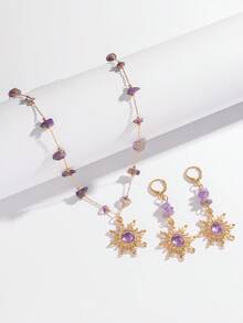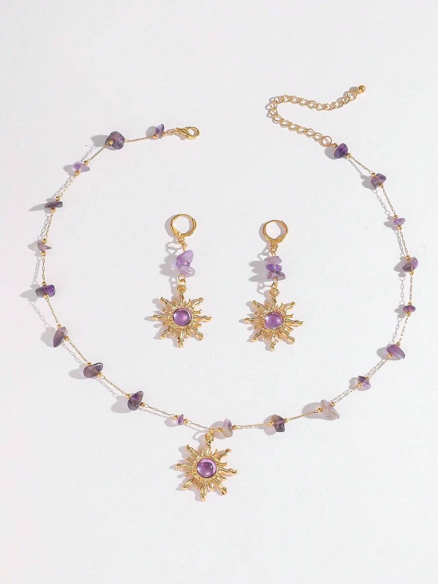 Fairycore 1 pieza Conjunto de collar y 1 pieza de aretes, colgante asimétrico de girasol, conjunto de joyas fresco y versátil para mujeres