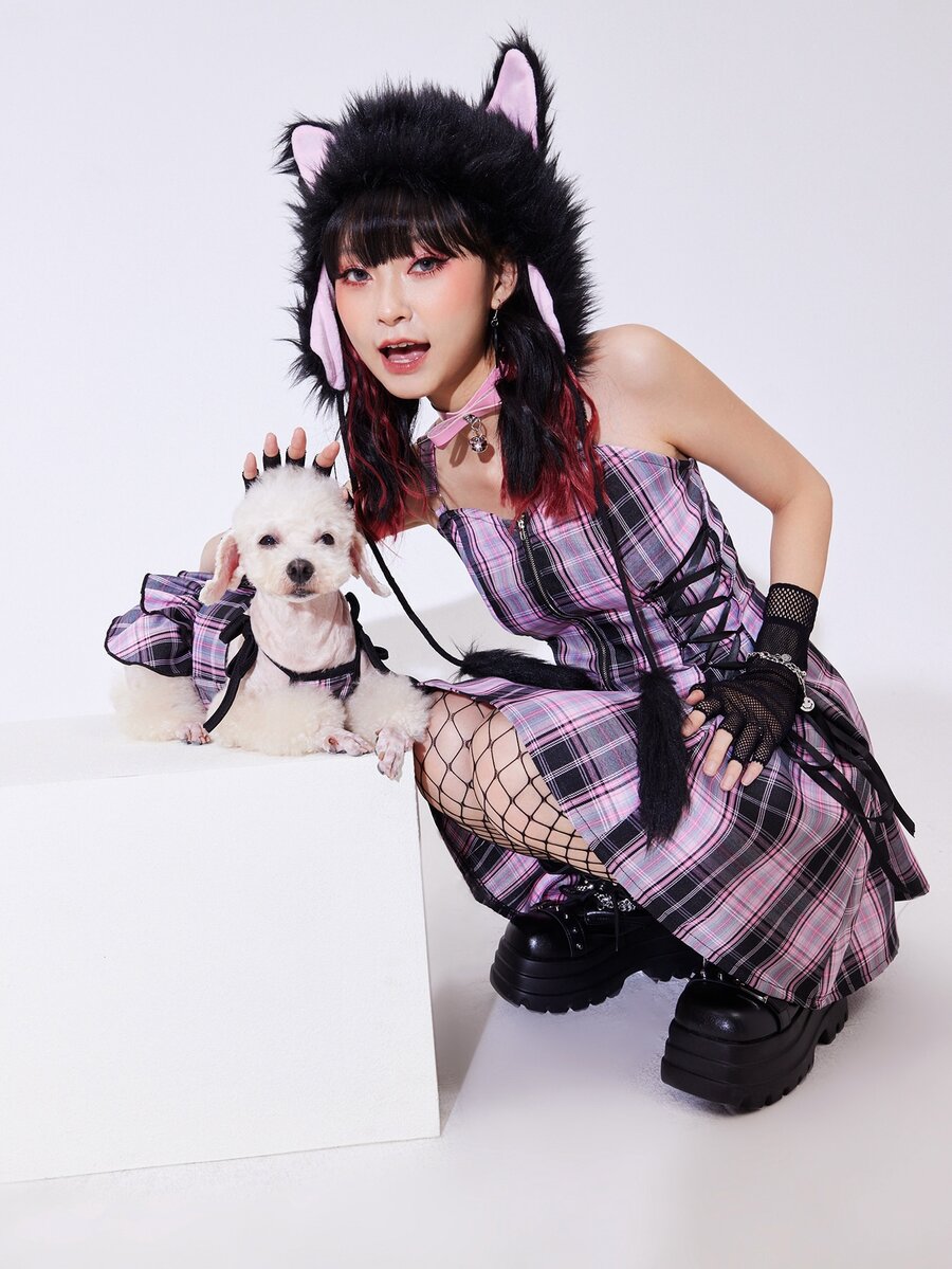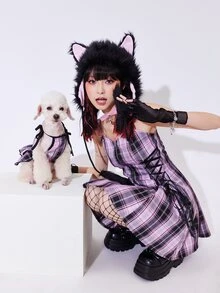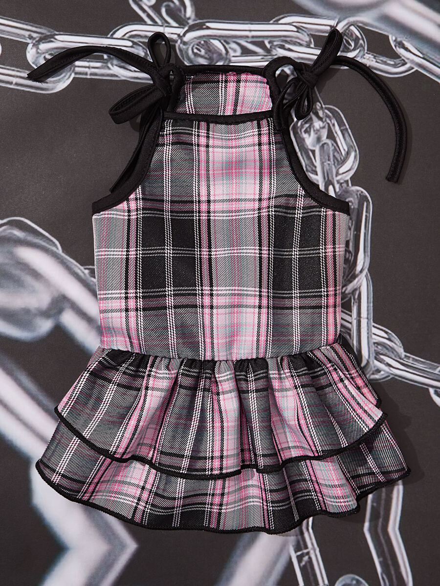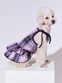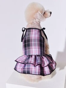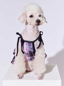 1 pieza Vestido de mascota con estampado de cuadros ribete con fruncido