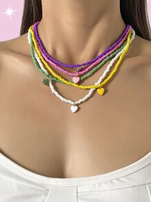 Sweetness 1 pieza Collar con cuenta de color al azar colgante de corazón