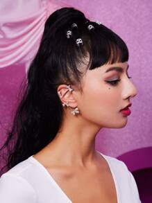 1 pieza Envoltura de oreja con diamante de imitación con diseño de lazo