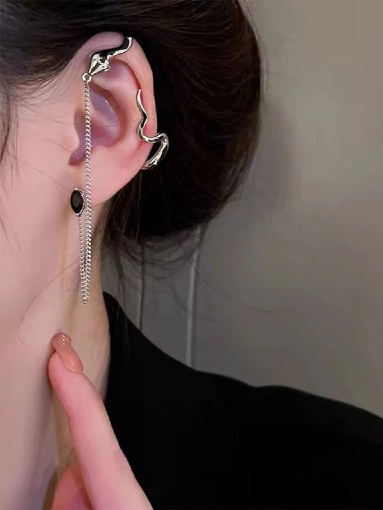 1 pieza Envoltura de oreja con diseño de diamante de imitación